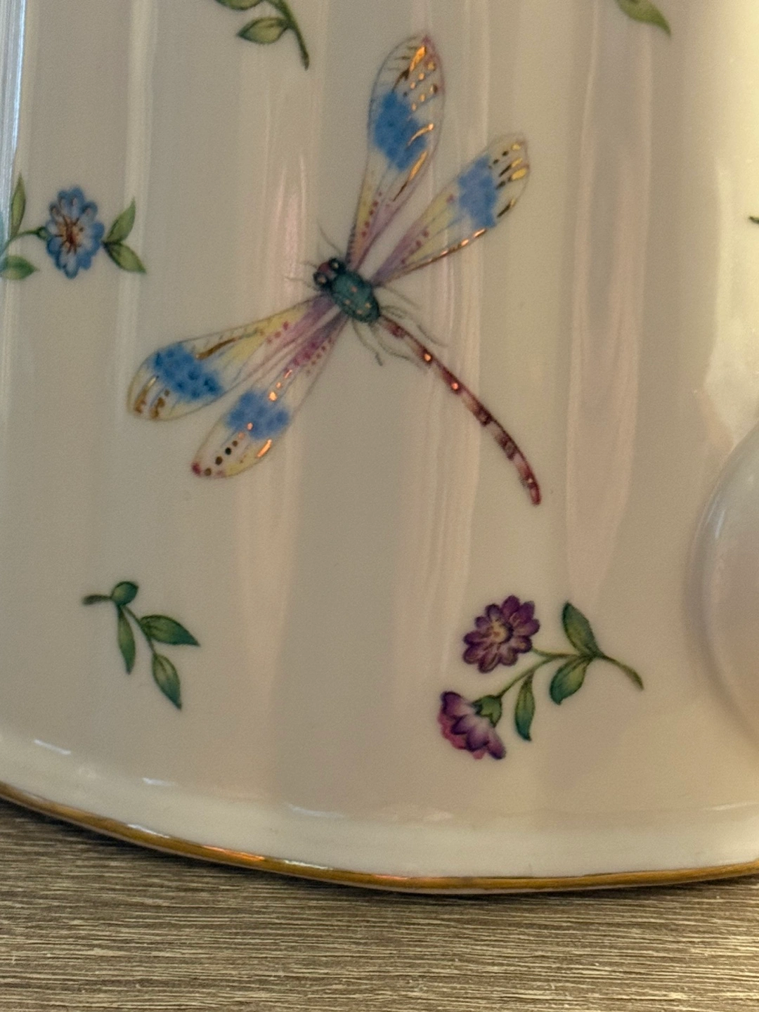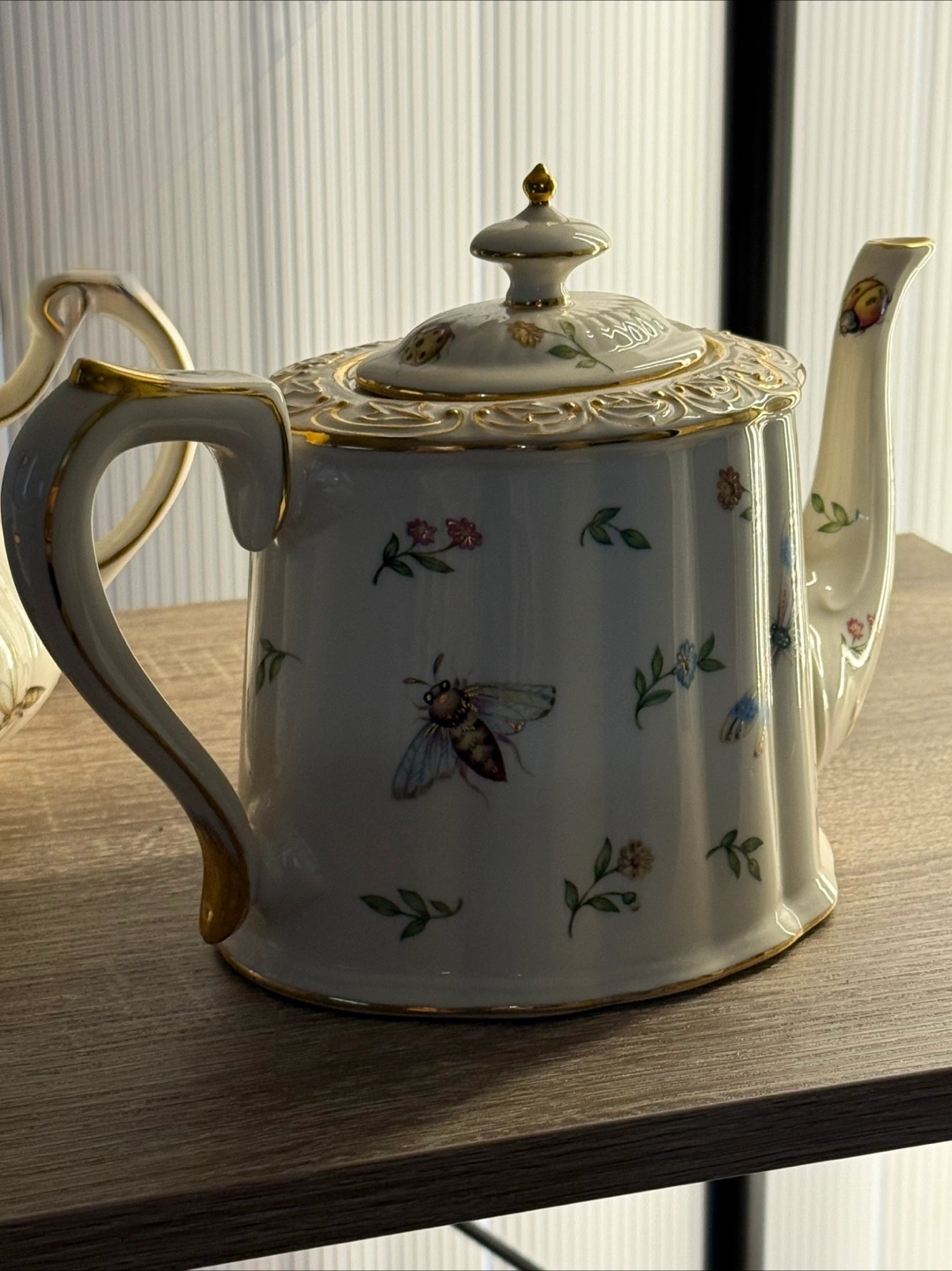 Two Vintage Teapots with Floral and Insect Design