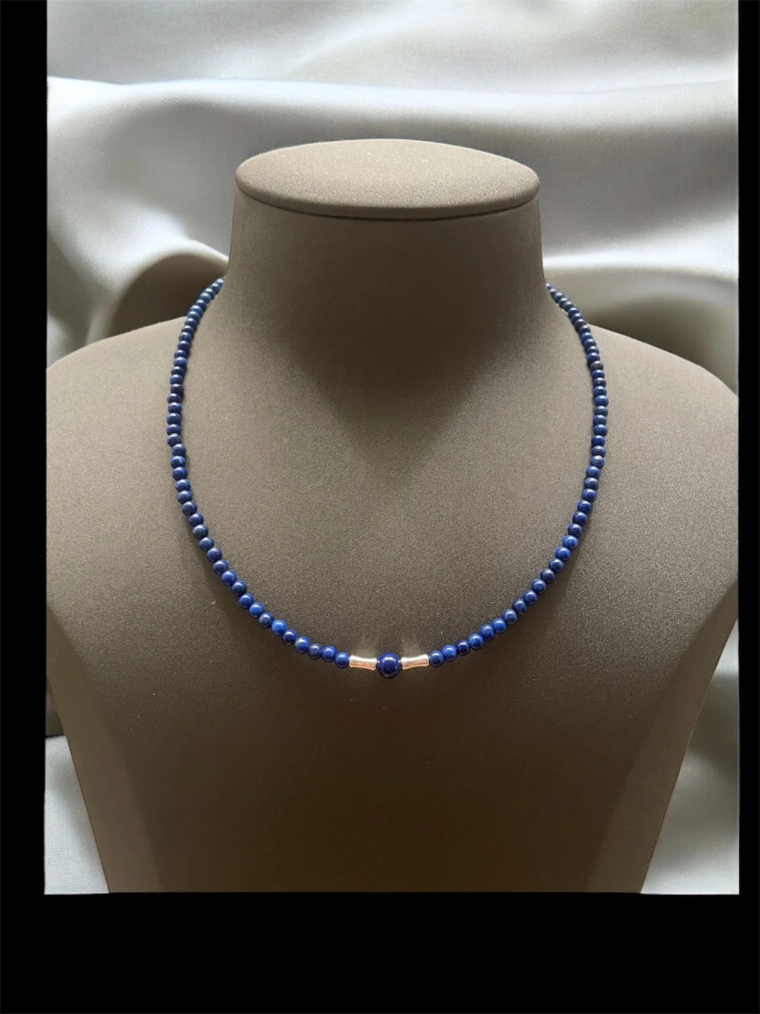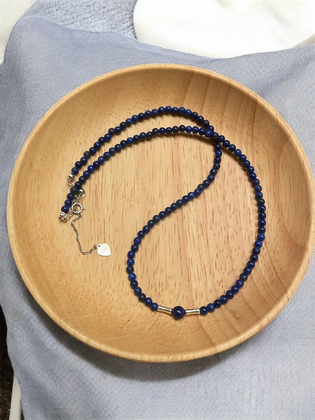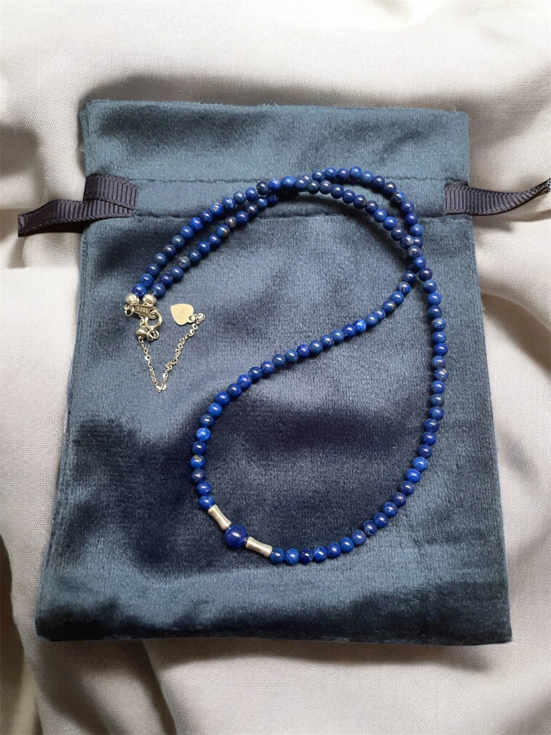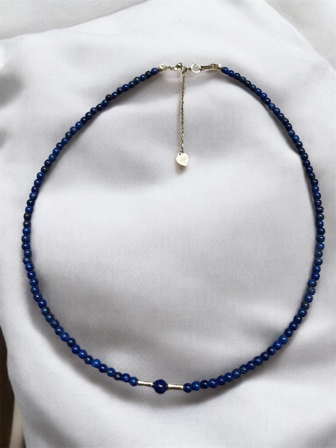 Lapiz Lazuli Beaded Necklace with 925 silver accents