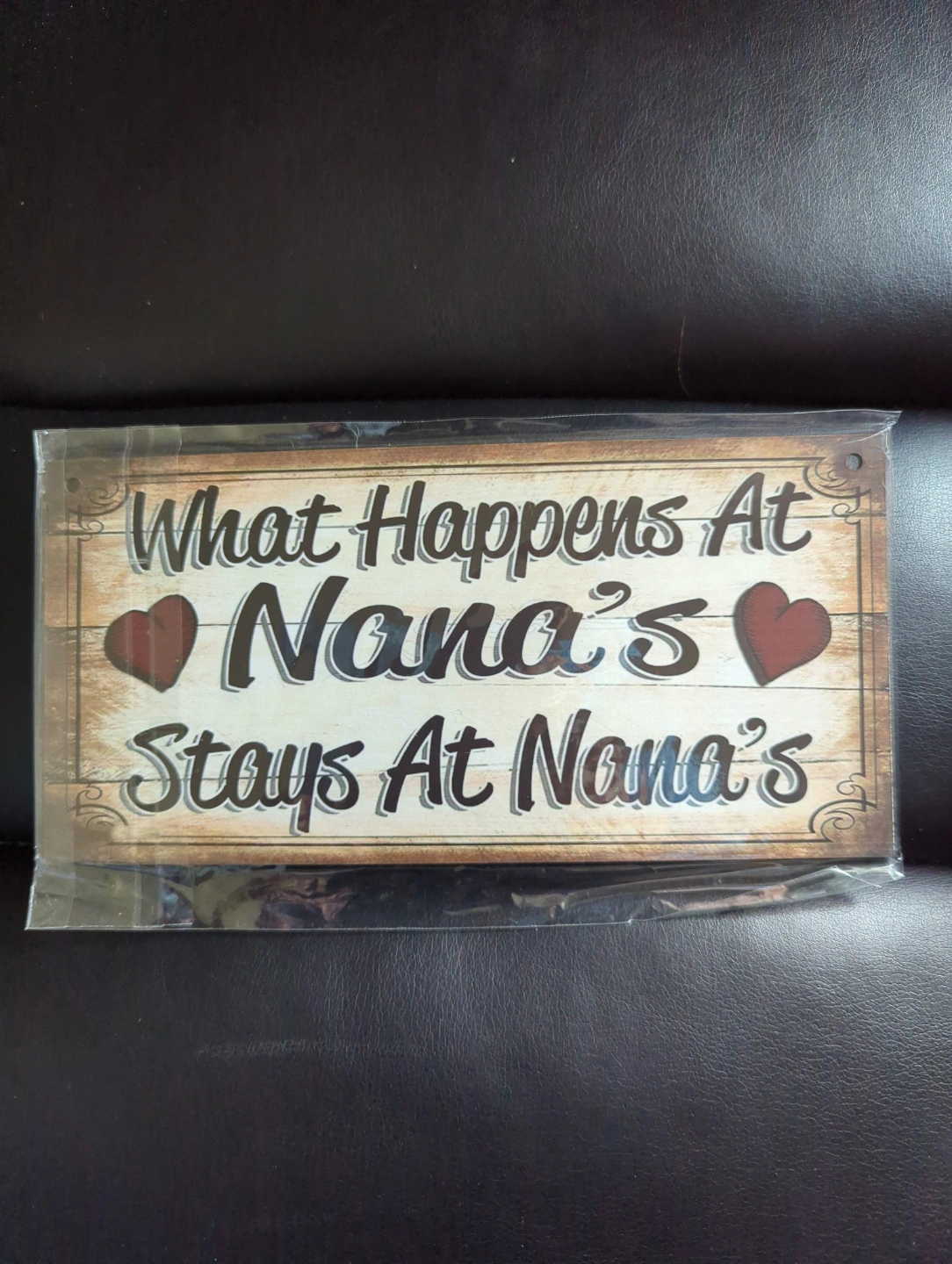 Cute sign for Nana's house. Features a rustic design with hearts. Perfect for a kitchen, living room, or any other place that needs some homey charm.