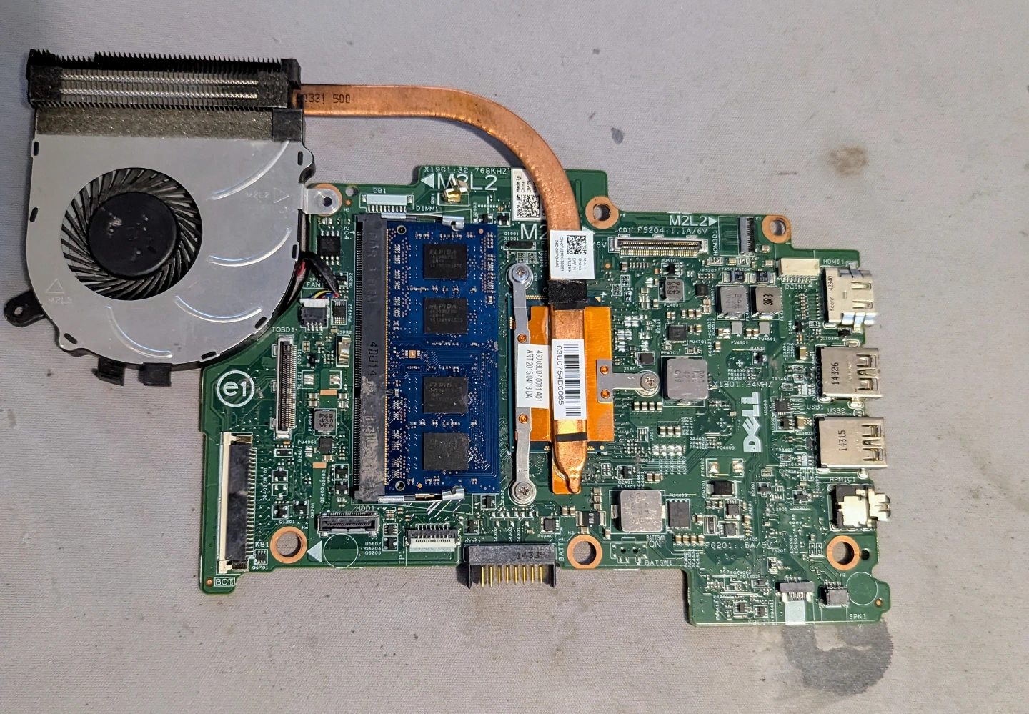I am selling a used in good operational condition a Dell Inspiron 7347 ,7348 Intel core motherboard combo with a Intel I series CPU cooling fan and heat sink and 4 GB of memory all for $35