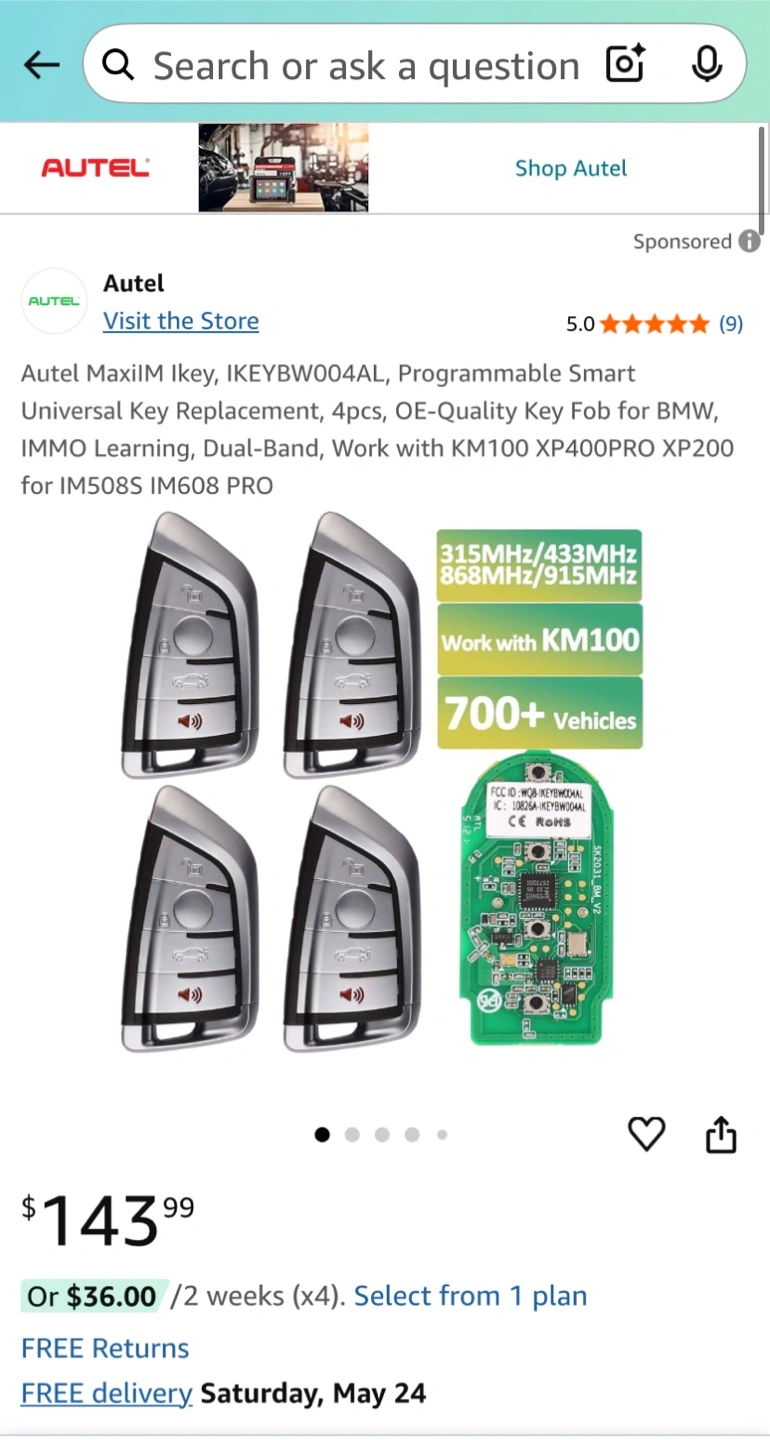 Autel MaxiIM Ikey, IKEYBW004AL, Programmable Smart Universal Key Replacement, 4pcs, OE-Quality Key Fob for BMW, IMMO Learning, Dual-Band, Work with KM100 XP400PRO XP200 for IM508S IM608 PRO - New