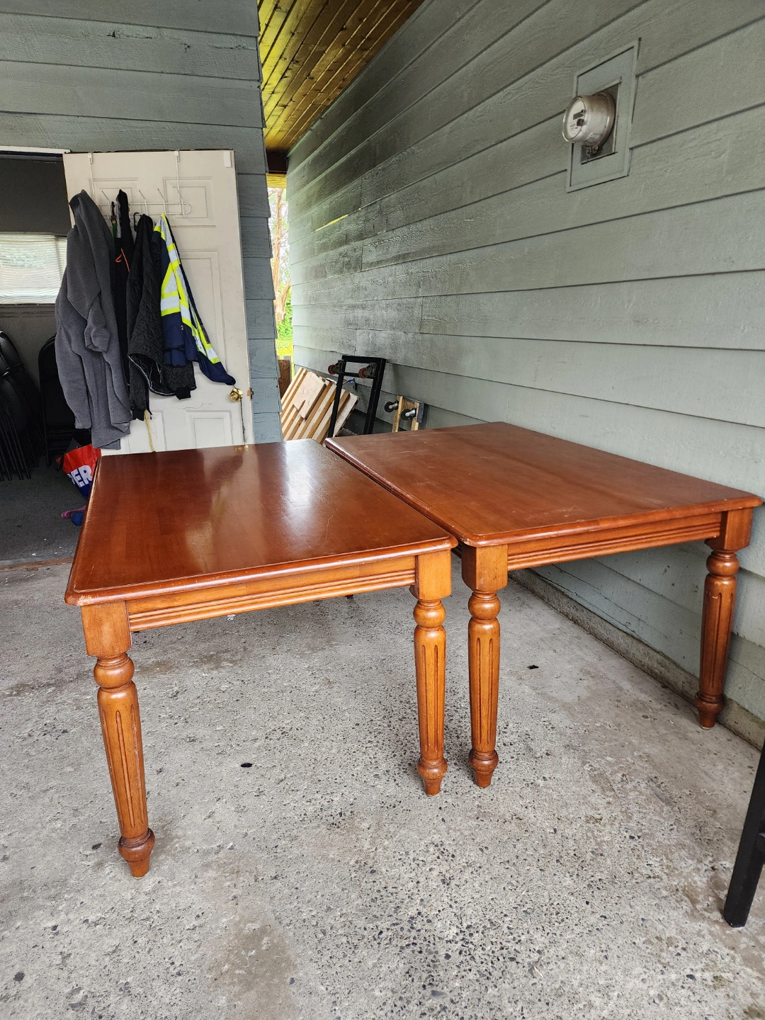 Two matching rectangular dining tables. Solid wood construction. Turned legs. Some minor wear. Excellent for a dining room or kitchen. per one $90