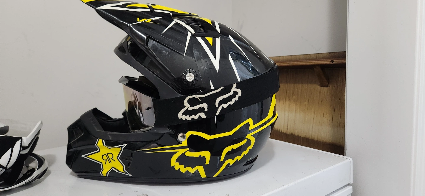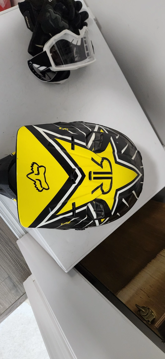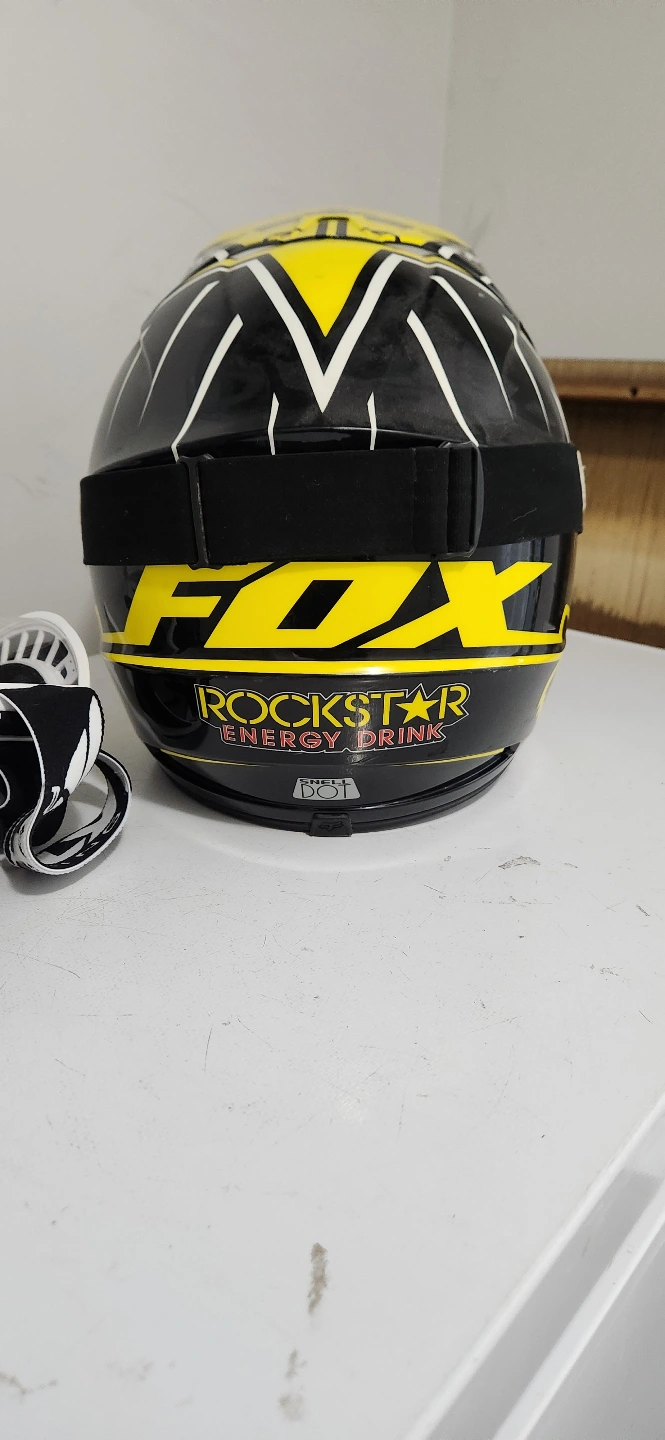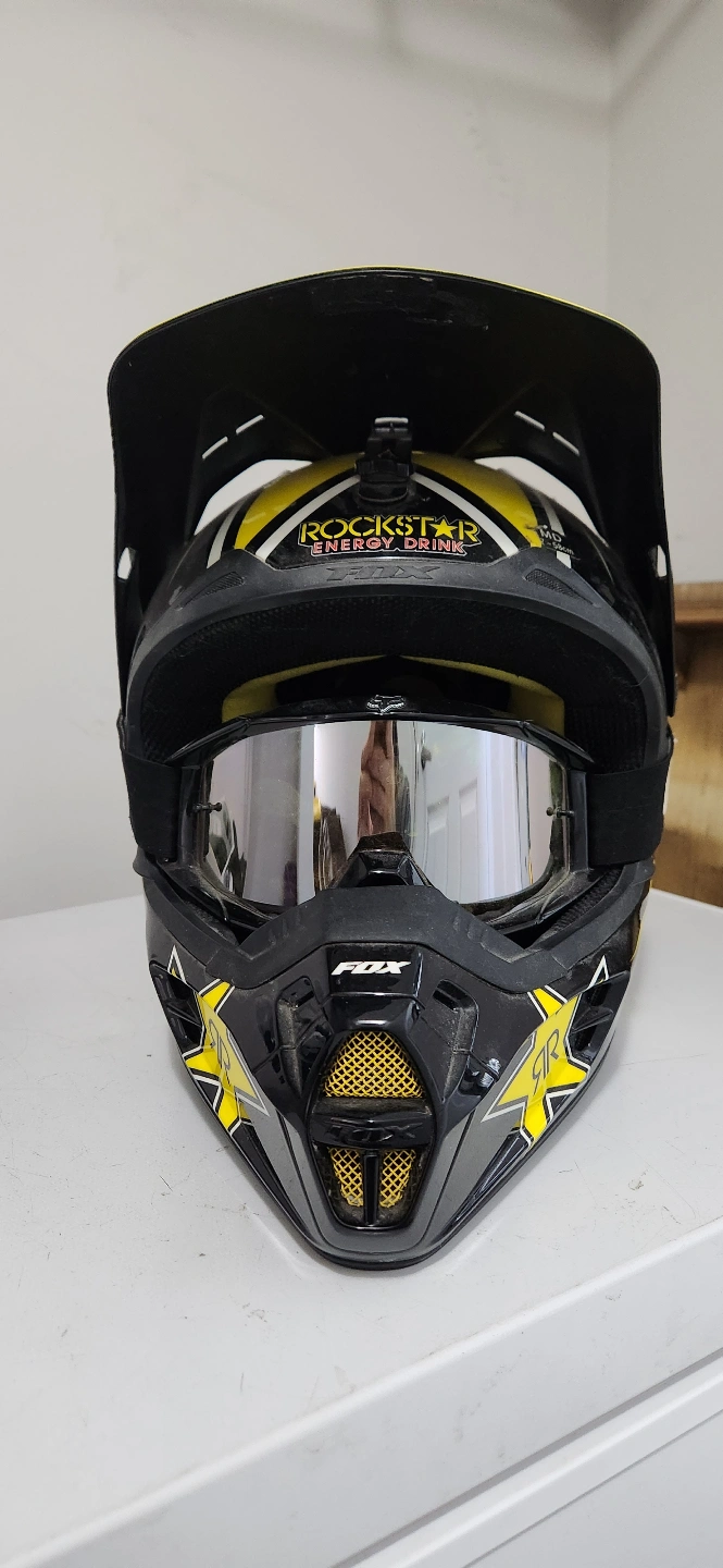 Rockstar factory race team V1 full face protective helmet , size medium , fits large, never crashed in perfect condition always stored indoors comes with FOX mantle goggles with mirror lenses will throw in a second set of goggles with clear lens if desired .