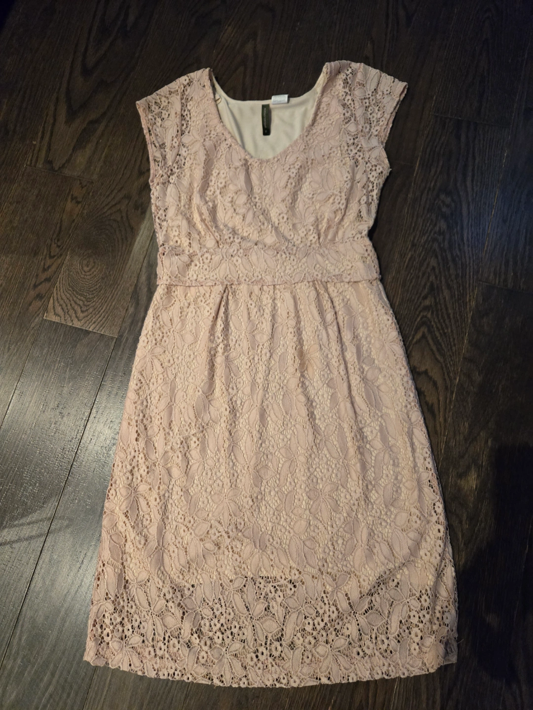 Beautiful pink lace dress. Size small. Easy access for breast feeding. Fit and flare style. Only worn once to a wedding. From pet and smoke free home.