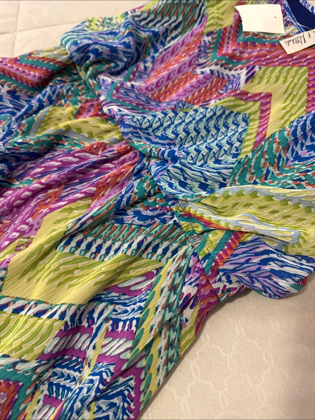 Beautiful, vibrant maxi dress. Size 8. Features a colourful, geometric print. Lightweight and flowy material. Perfect for summer.