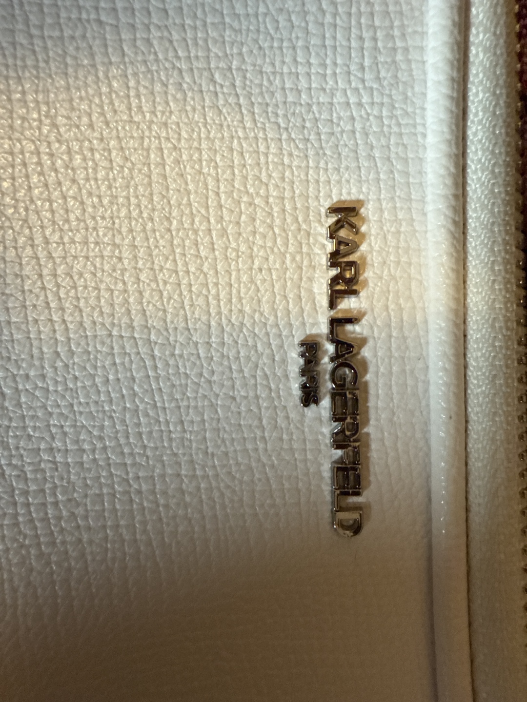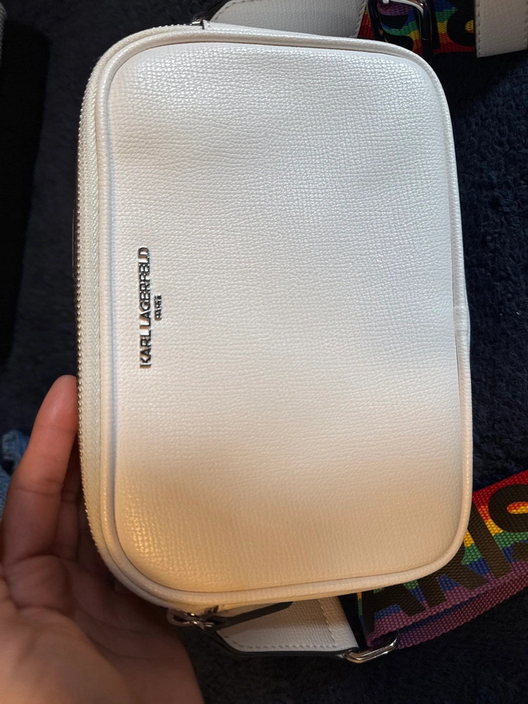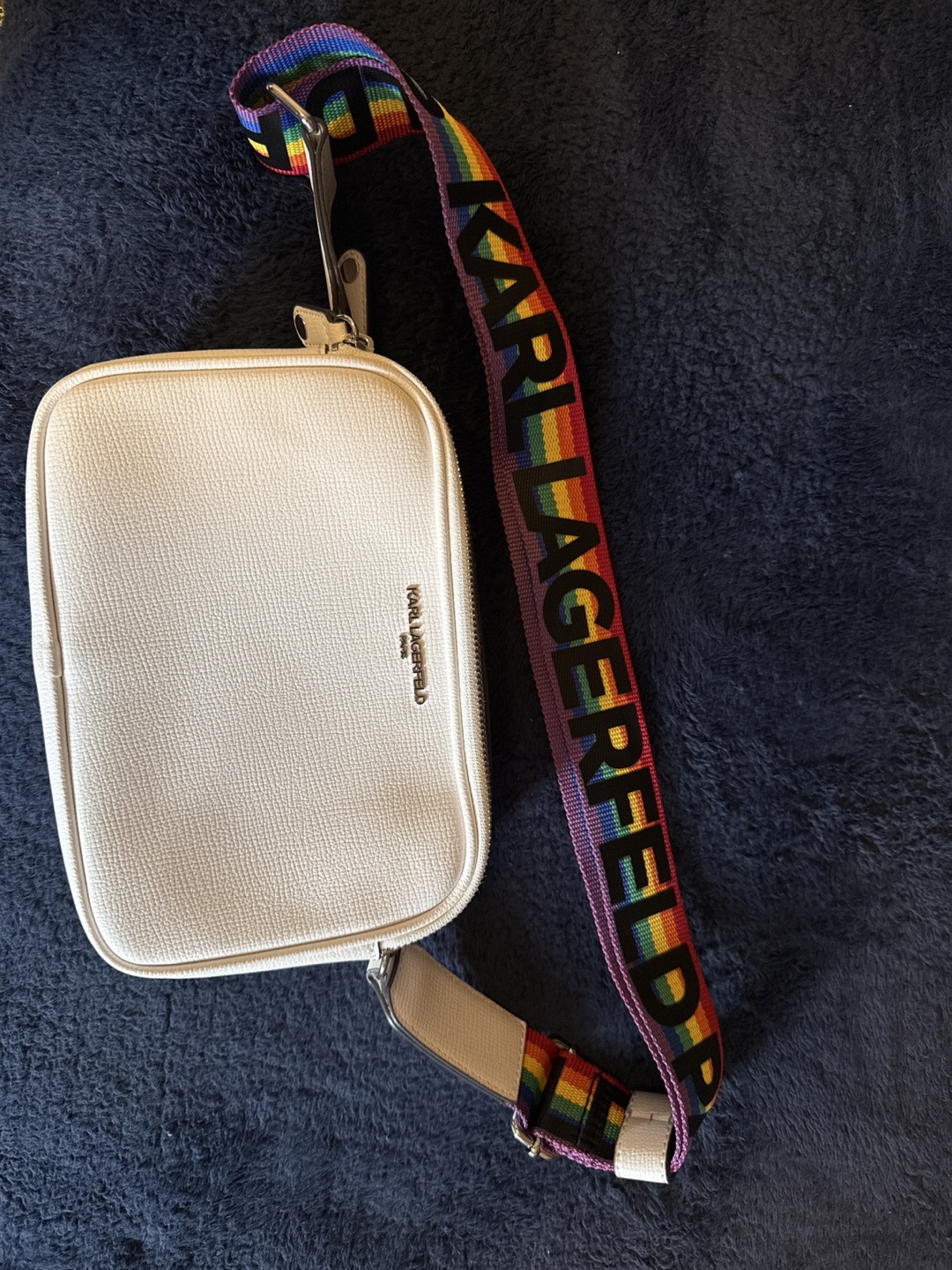 Karl Lagerfeld Paris White Crossbody Bag with Rainbow Strap
