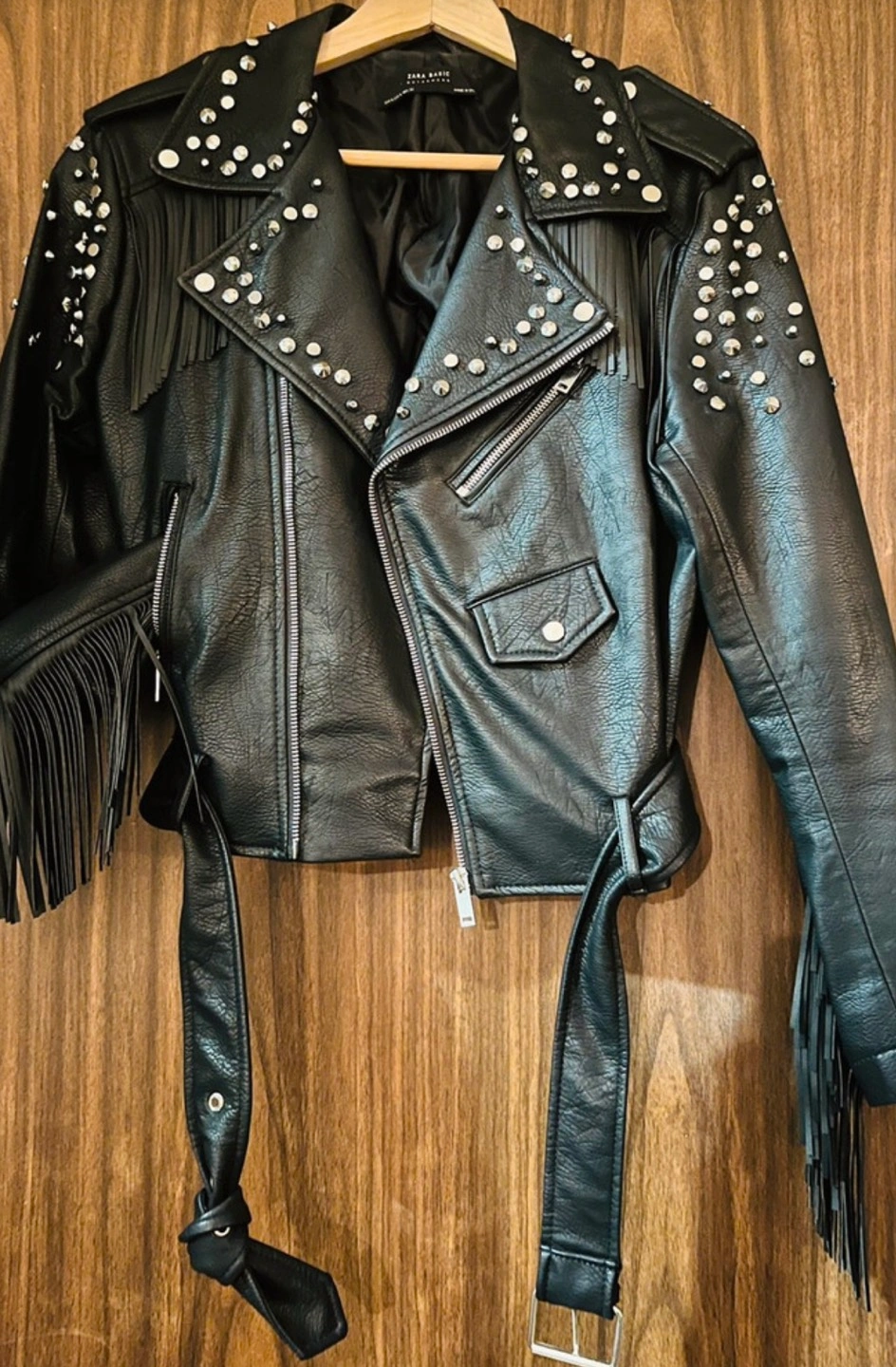 ZARA BASIC XL Fringe & Studded Faux Leather Jacket