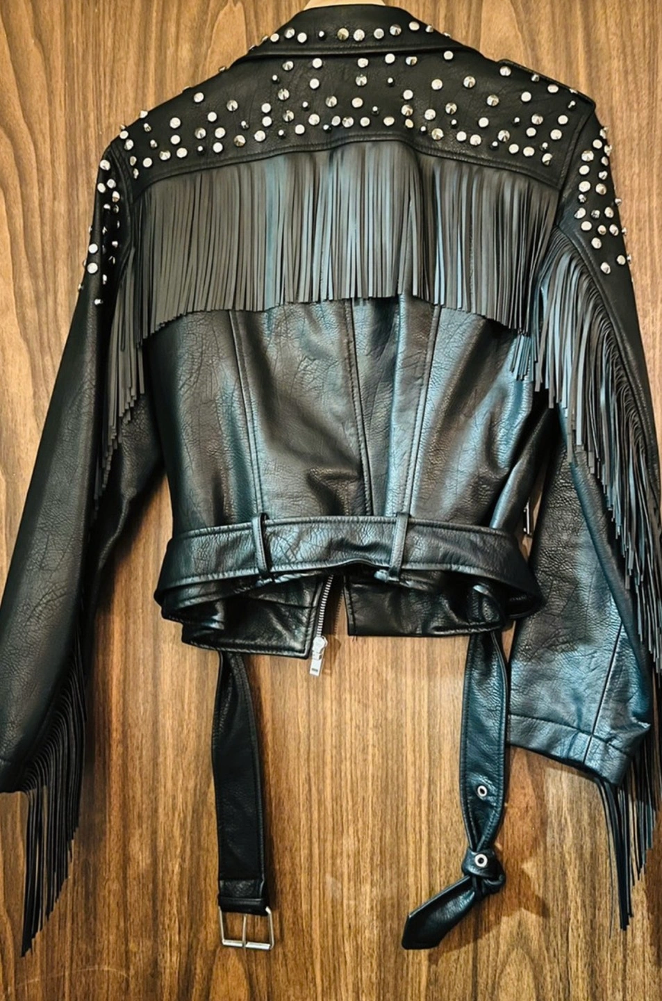 $50 Cash PICK-UP ONLY Status: New Never Worn Style: Fringe & Studded Faux Leather Jacket Colour: Black Size: XL Pick-Up in Thornhill, ON *Near Yonge St. & Clark Ave*
