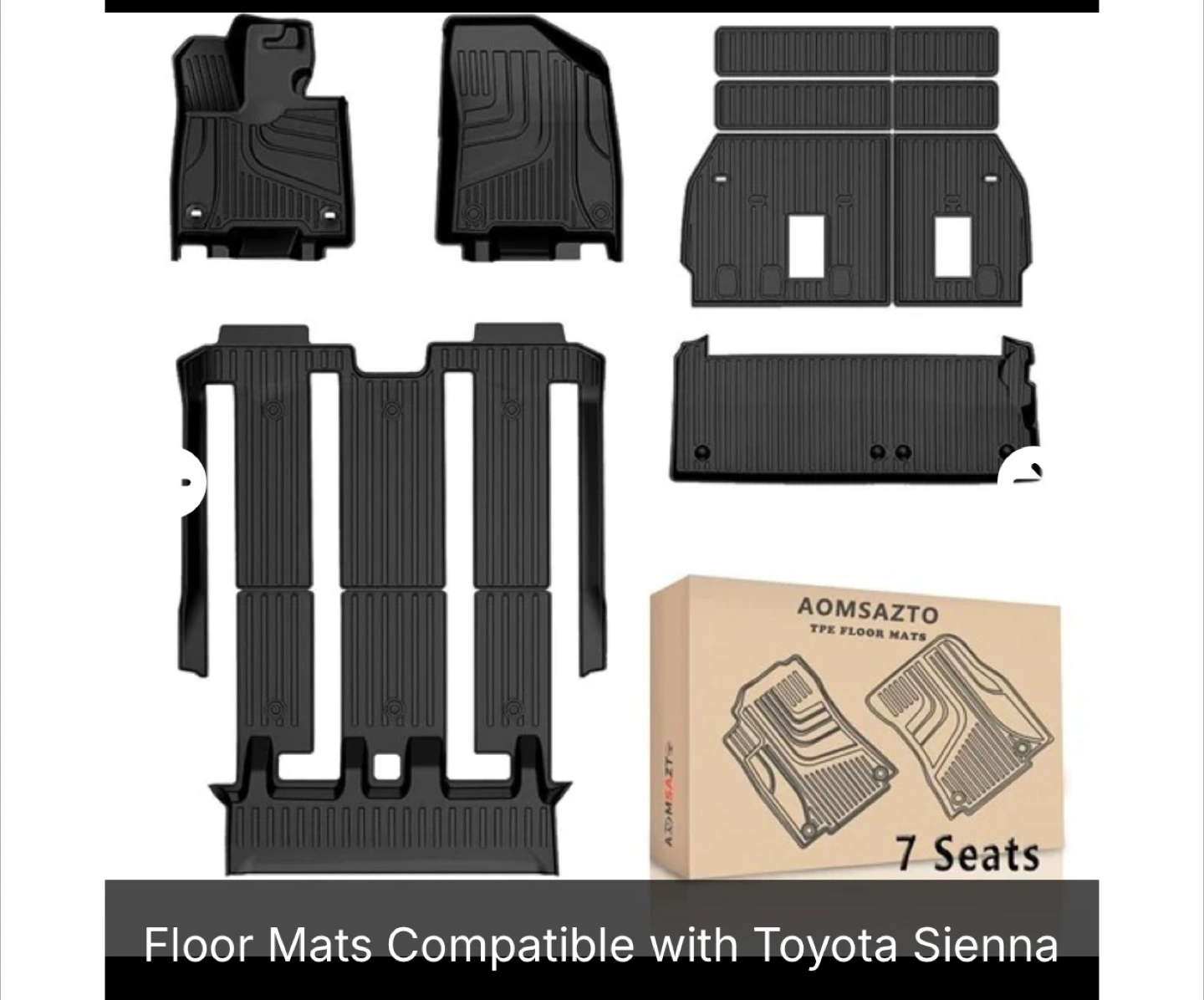 Floor mat fit Toyota sienna only 7 seats 2021-2024 all weather backrest mat &cargo liner & floor mats set for sienna 1st, 2nd,3rd row black new never been used 11 pcs