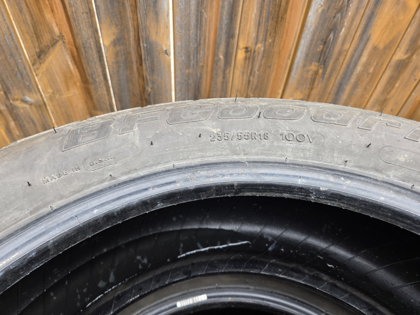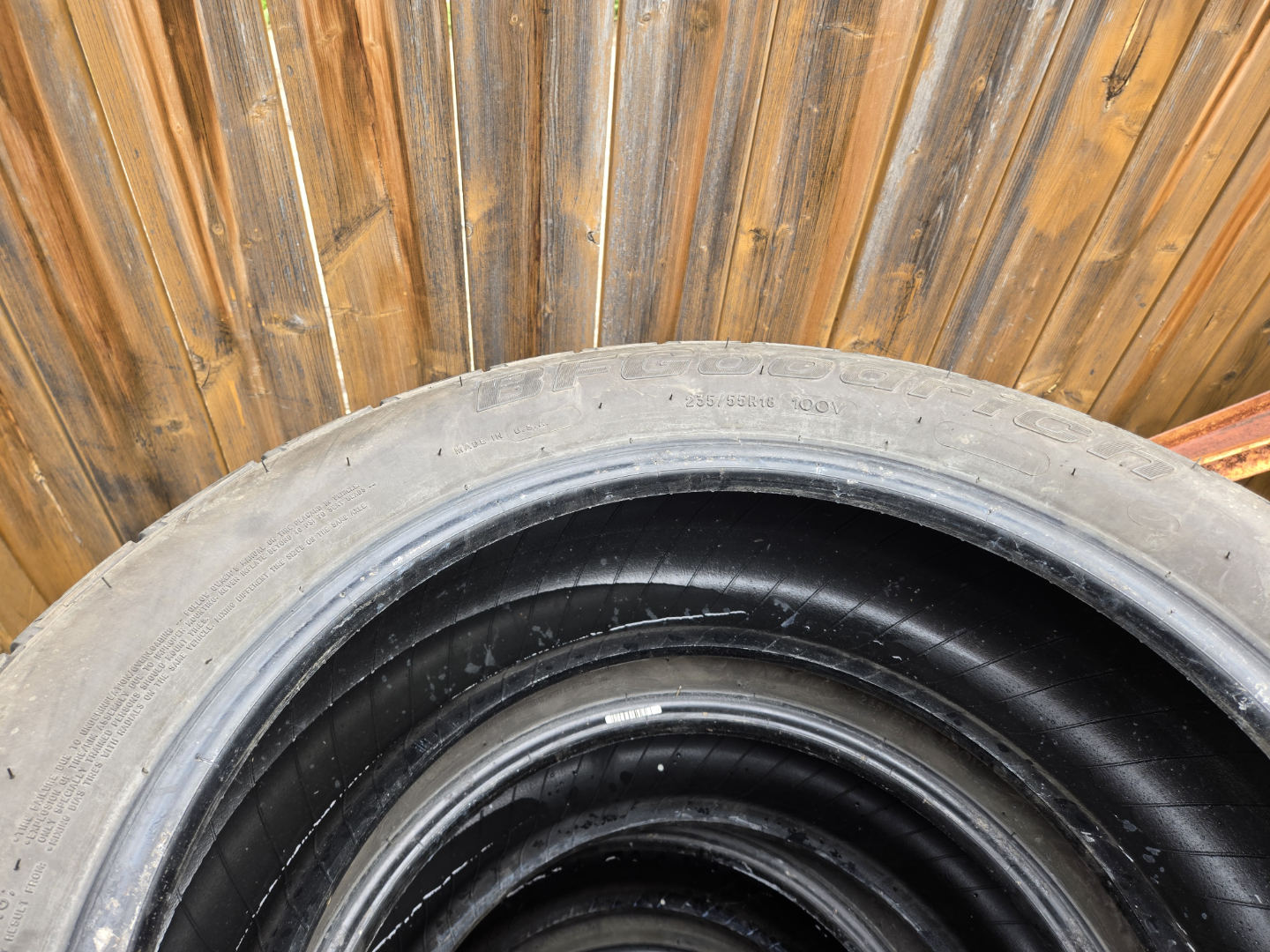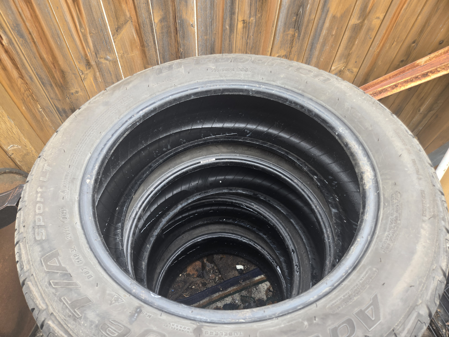 Stack of four used BFGoodrich Sport tires. Size 235/55R18 100V. . Sold as a set.