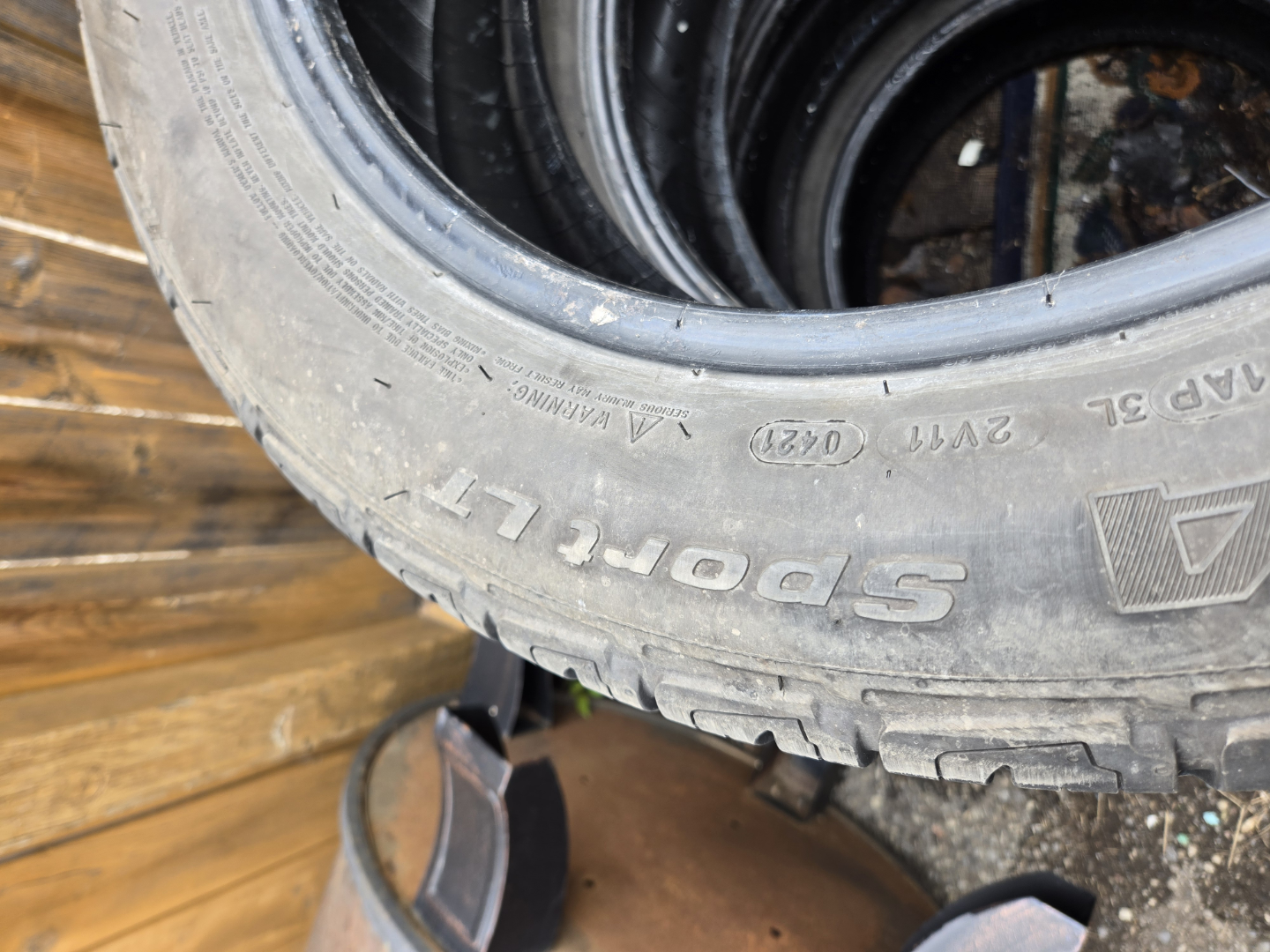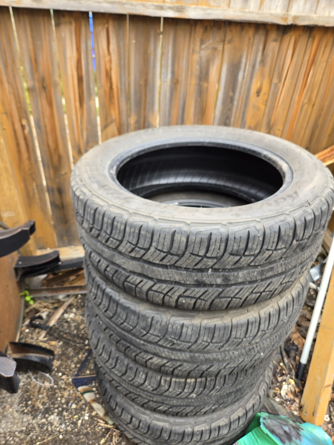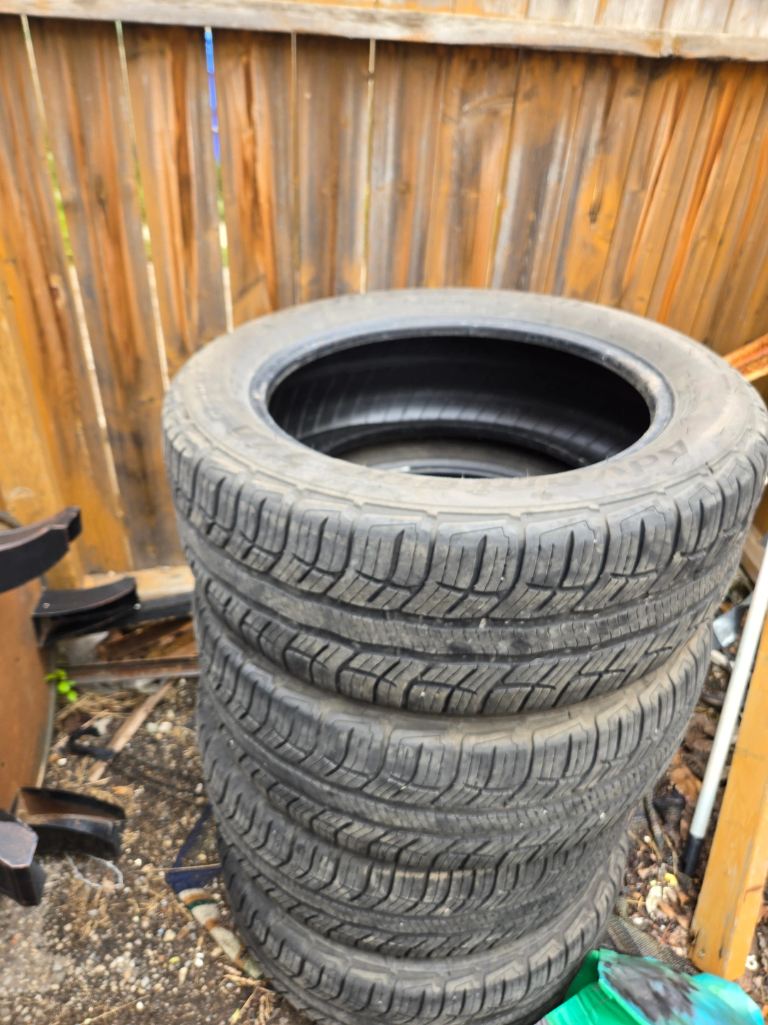 Stack of four used BFGoodrich Sport tires. Size 235/55R18 100V. . Sold as a set.