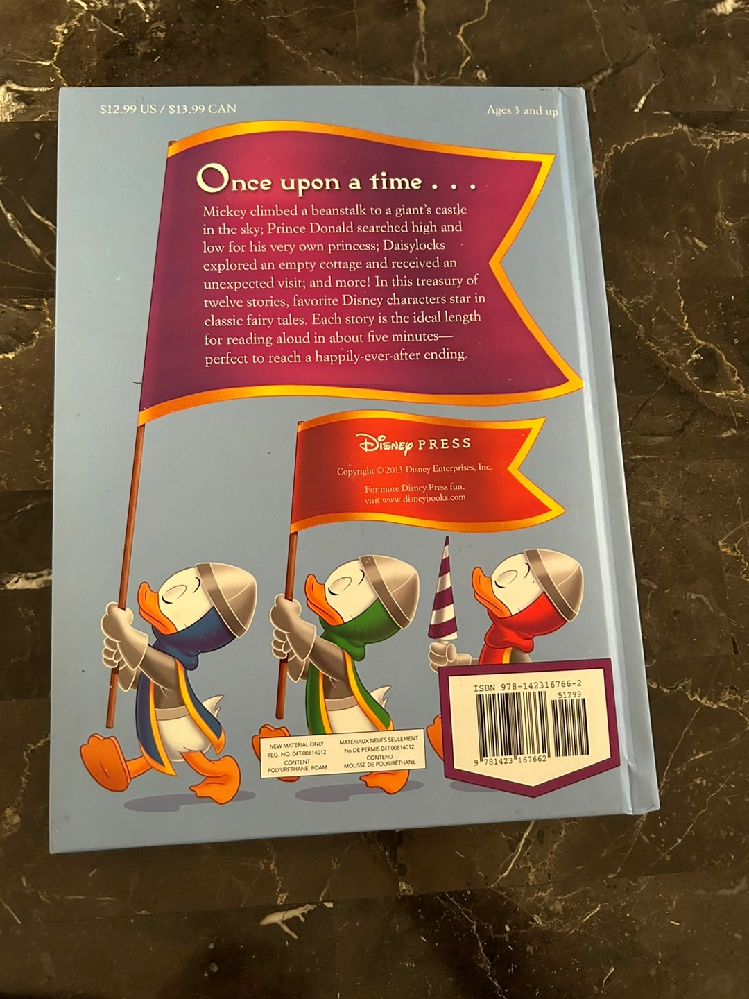 Brand new hardcover book. Twelve classic fairy tales. Features Disney characters. Top right corner is where price tag/sticker used to be.