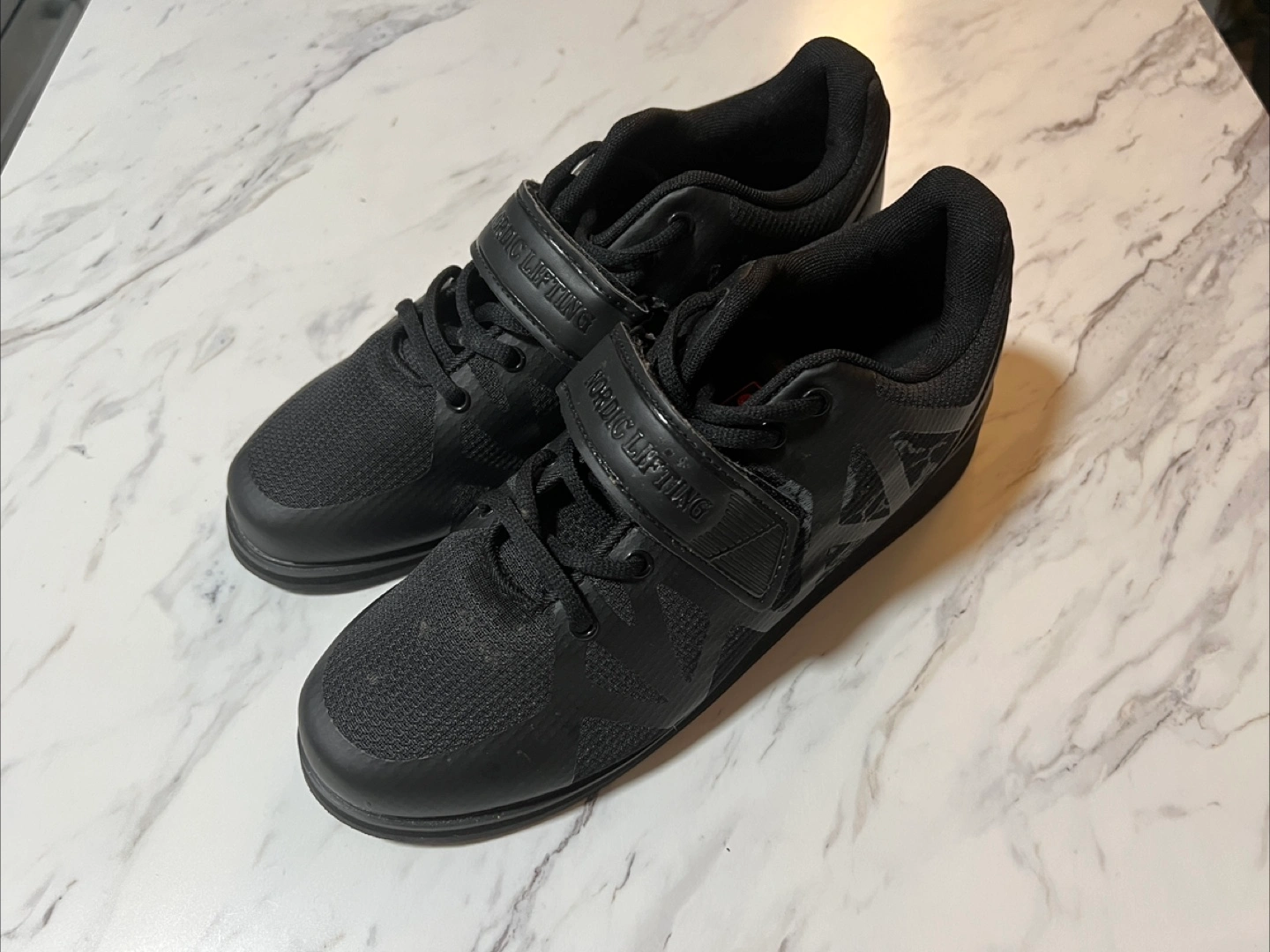 Men's powerlifting shoes. Size 9.5. Black color. Great for squats. Durable material. Only worn twice. Pick up only. Thank you!