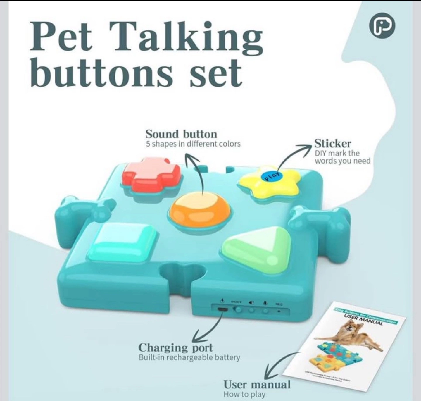 5 in 1 Recordable Dog Talking Button Set,USB Rechargeable NEW