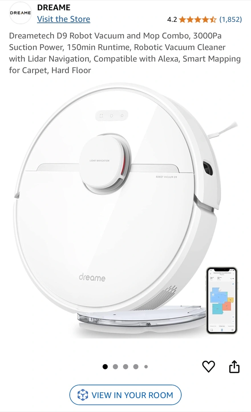 3000Pa suction power. 150min runtime. Lidar navigation. Compatible with Alexa. Smart mapping for carpet and hard floors.