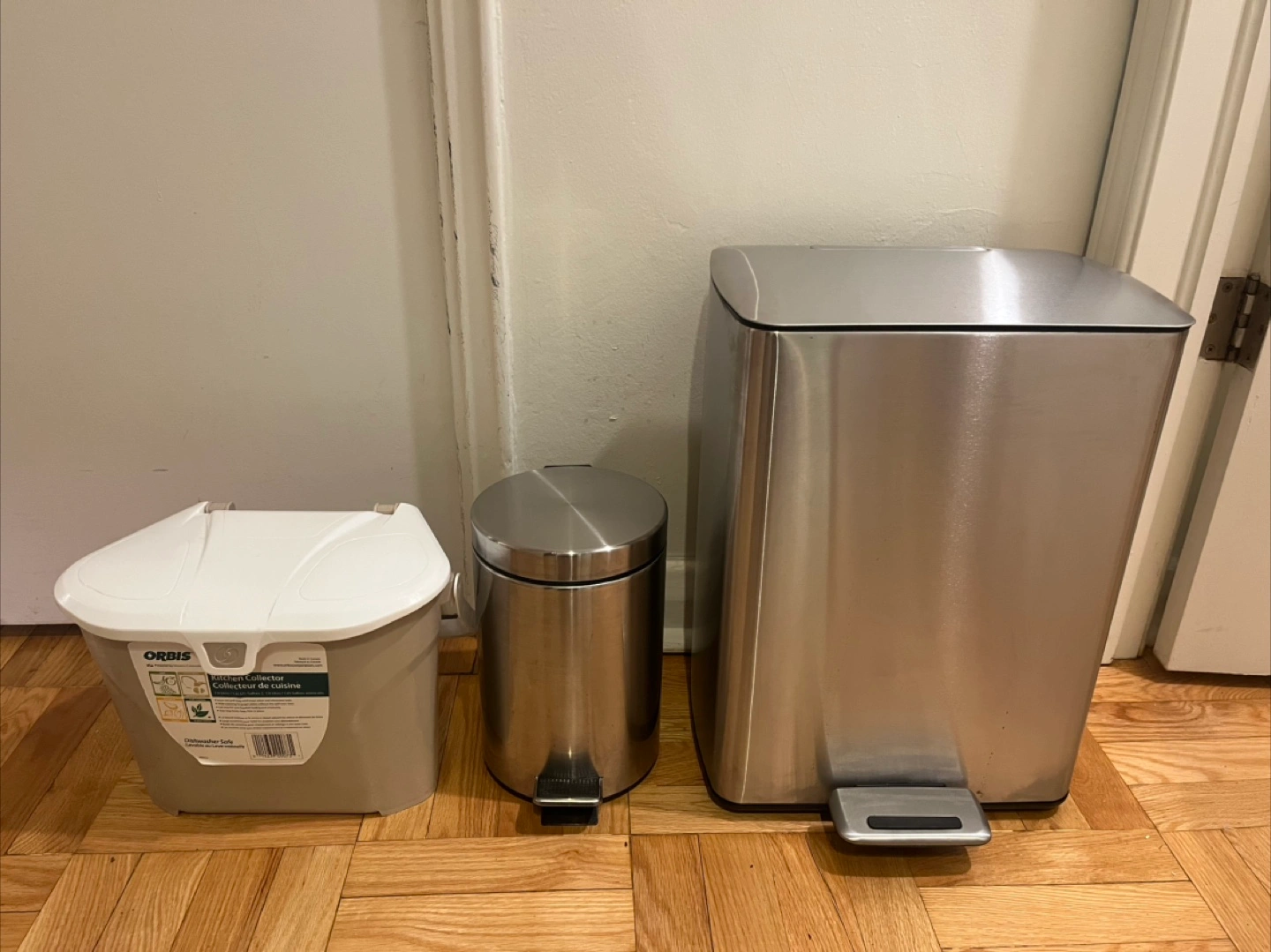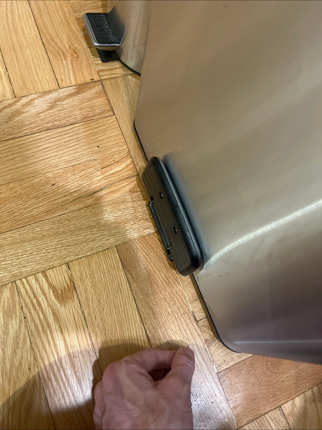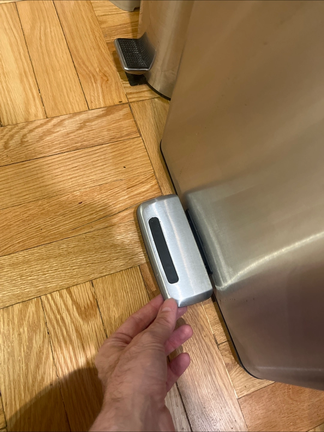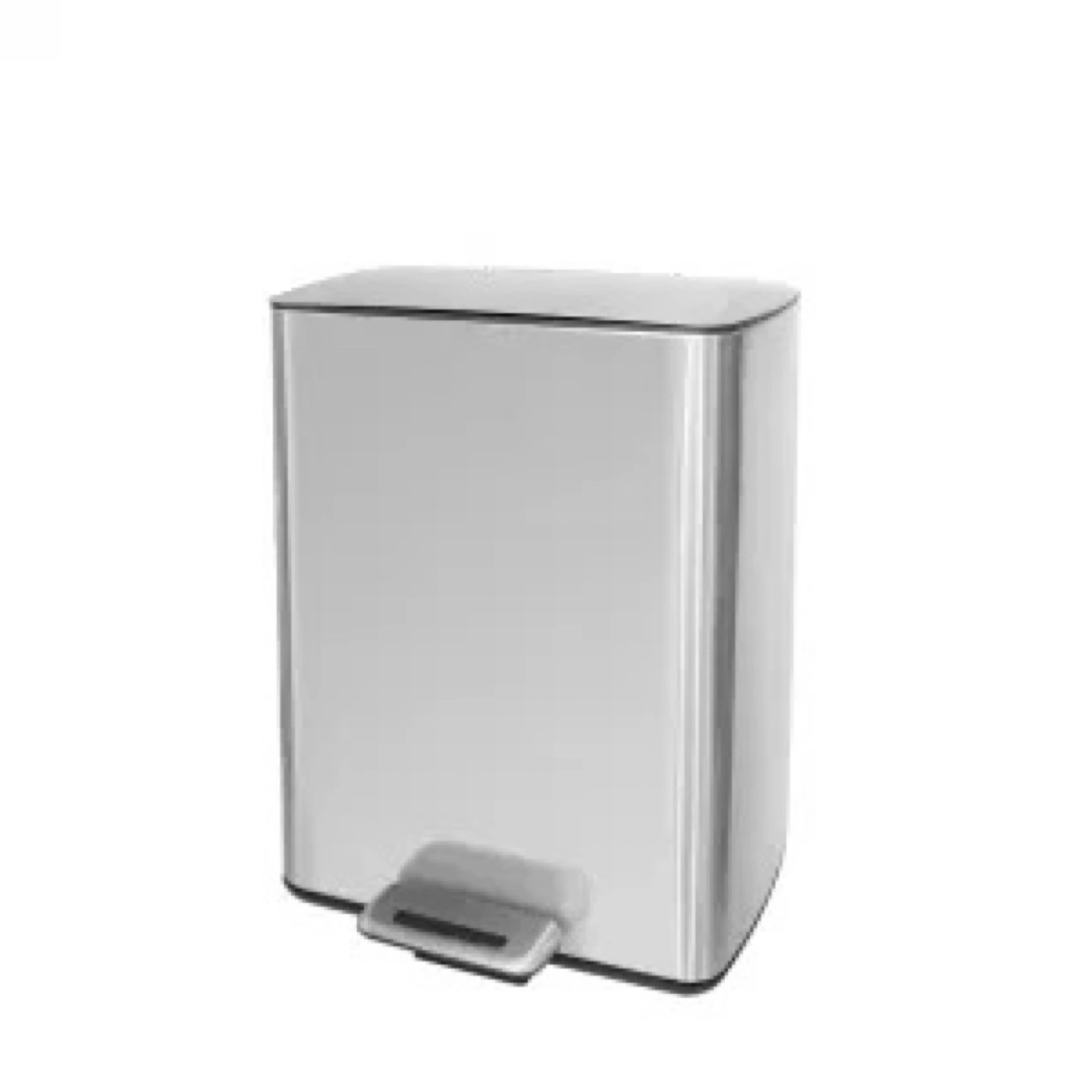 Garbage bin -Step-on can, brushed stainless steel finish. Foldable pedal and soft closing lid .