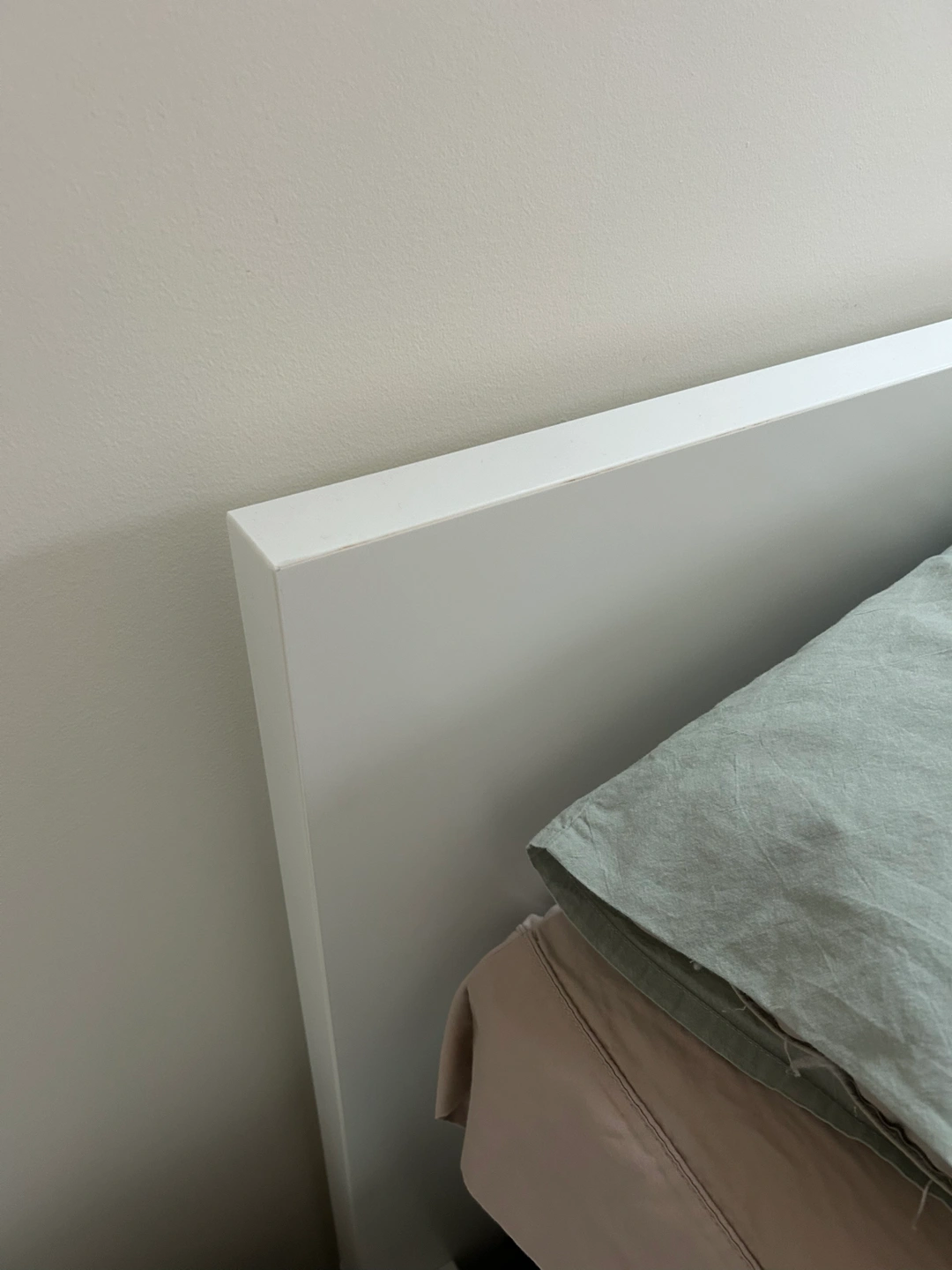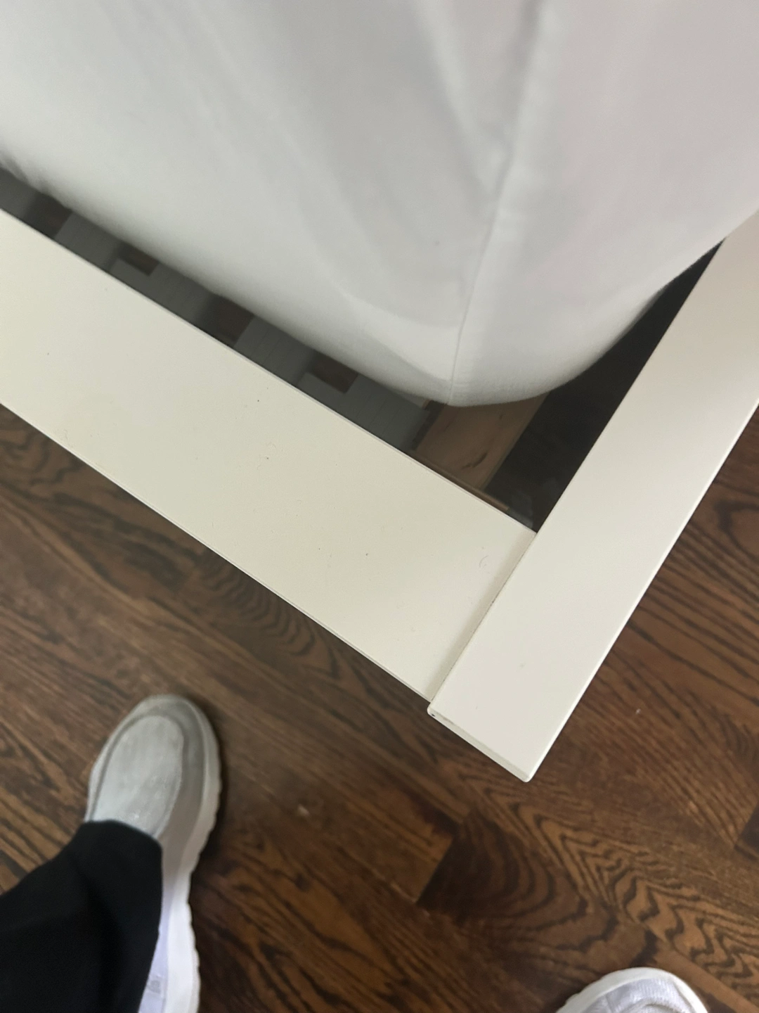 The bed is in great condition with only some minor scuffs at the front base. I actually was able to wipe most of them off and am sure the remaining ones will buff off with a cloth!