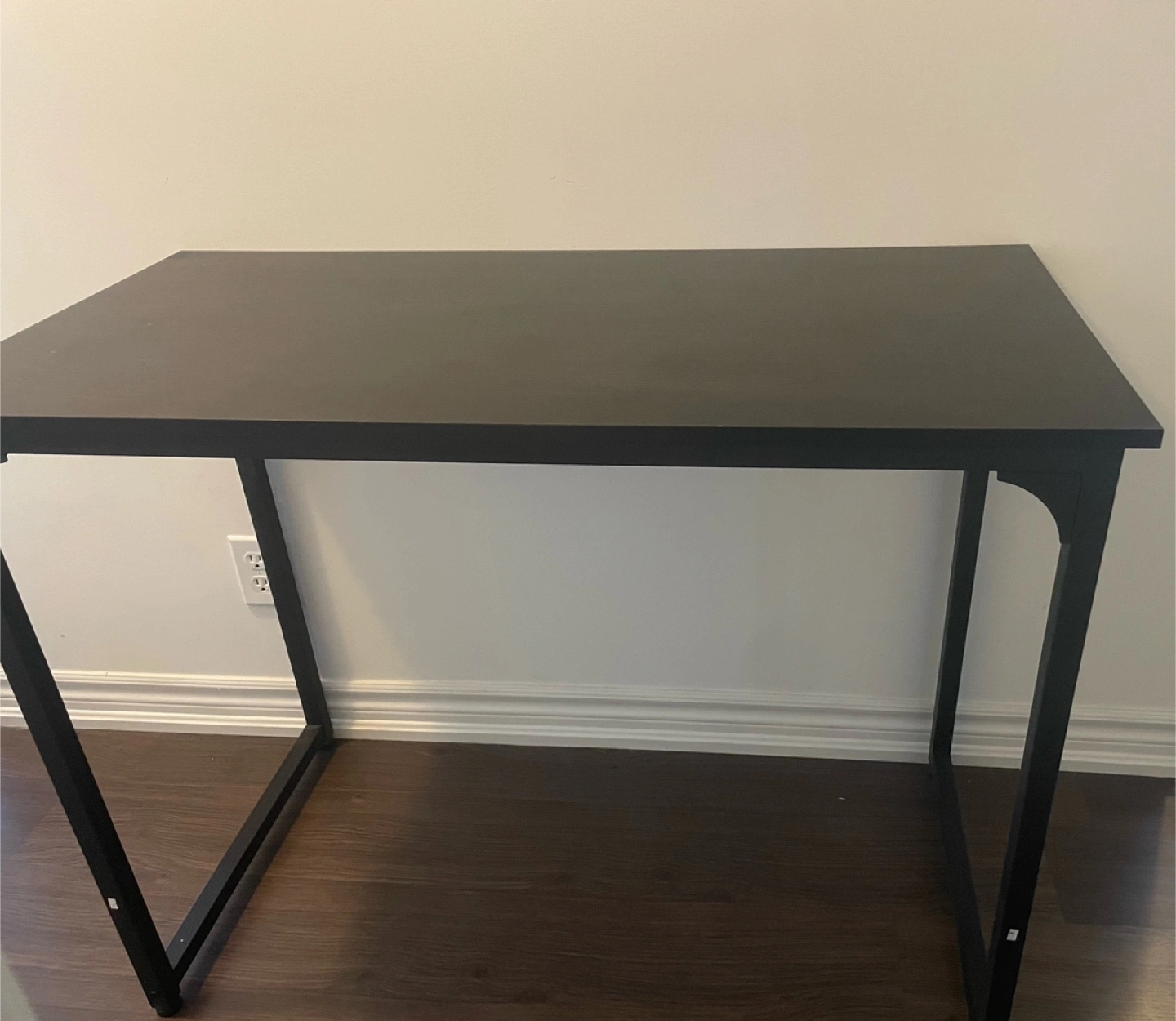 Modern minimalist black computer desk. Simple design, sturdy metal frame. Great for home office or small spaces. Dimensions approximately 39” x 24" x 29"