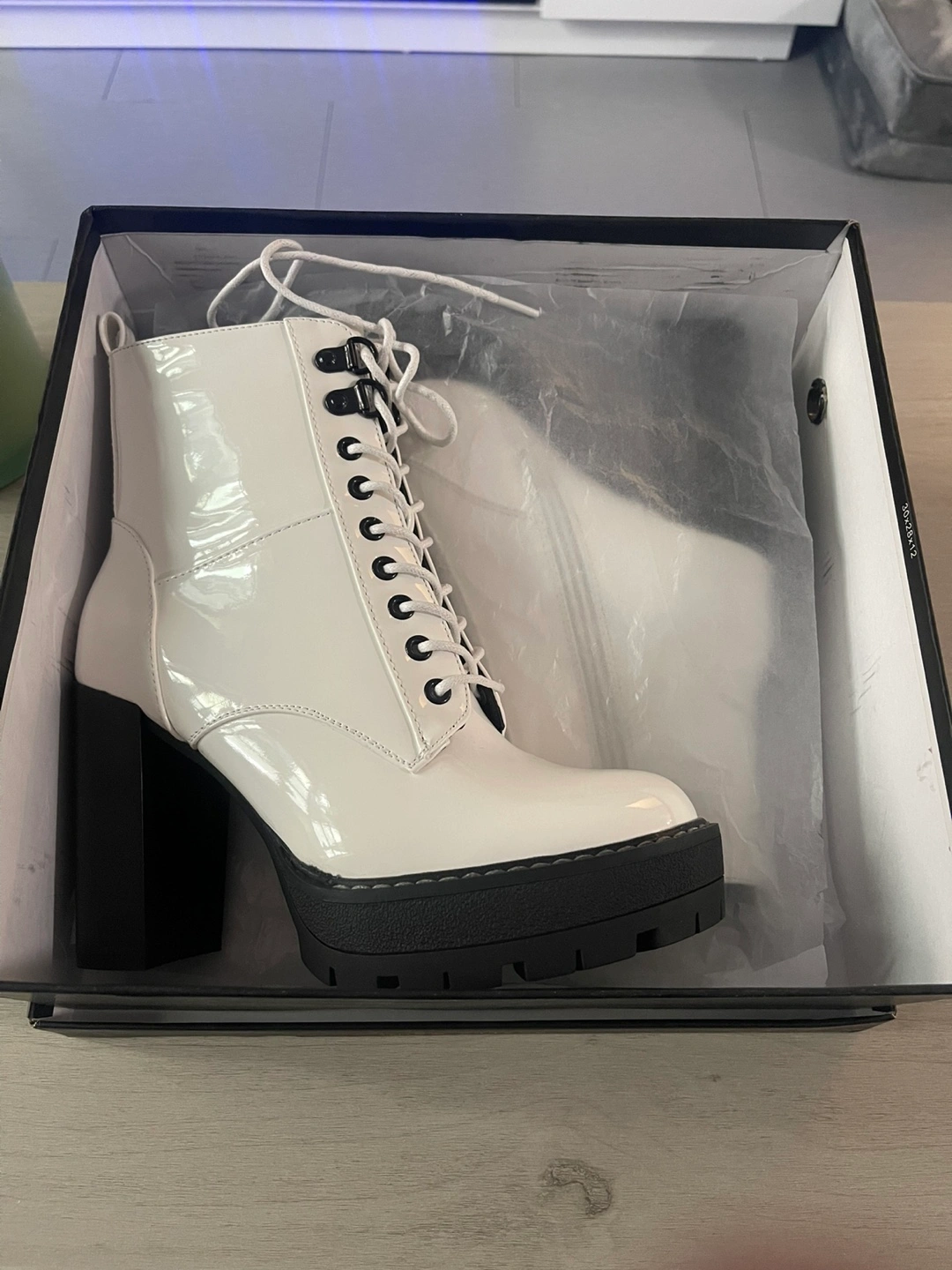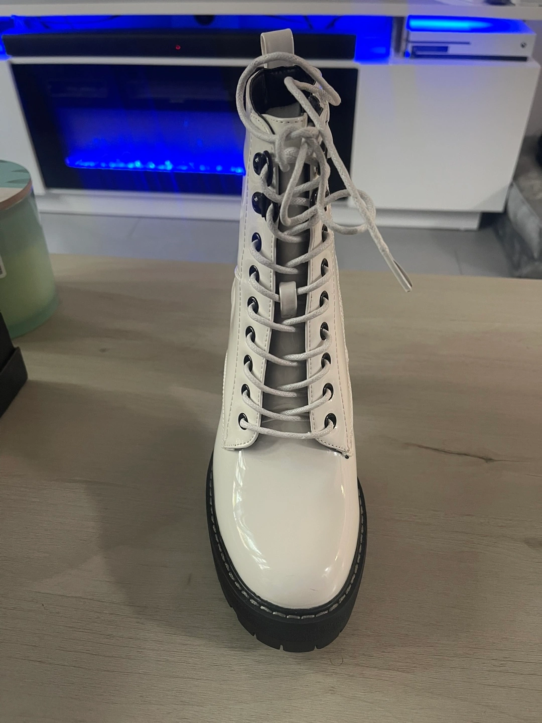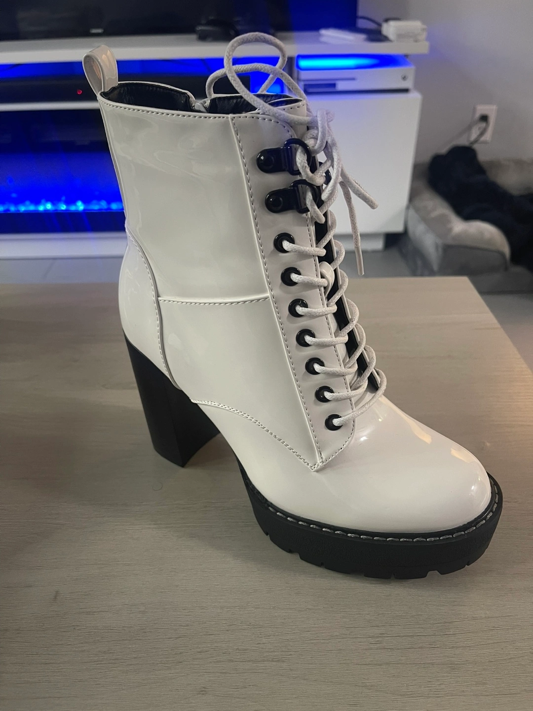 White Patent Leather Platform Boots