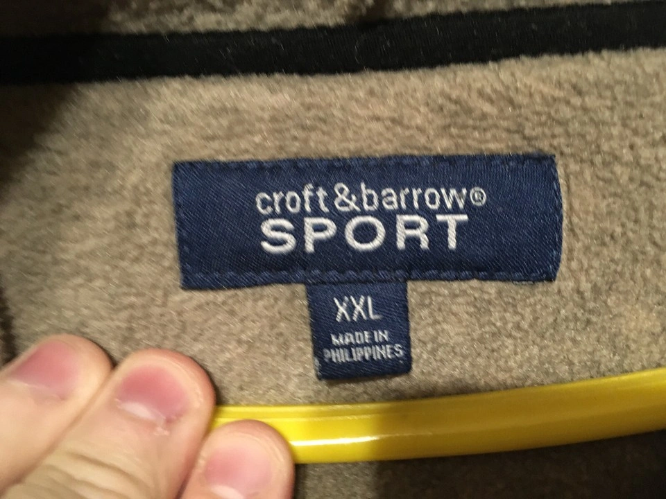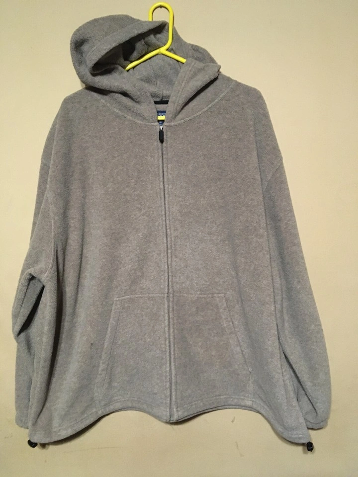 Men's gray fleece zip-up hoodie. Size XXL. Croft & Barrow Sport brand. Made in the Philippines. Features a hood and front pouch pocket.washed. pick up at house