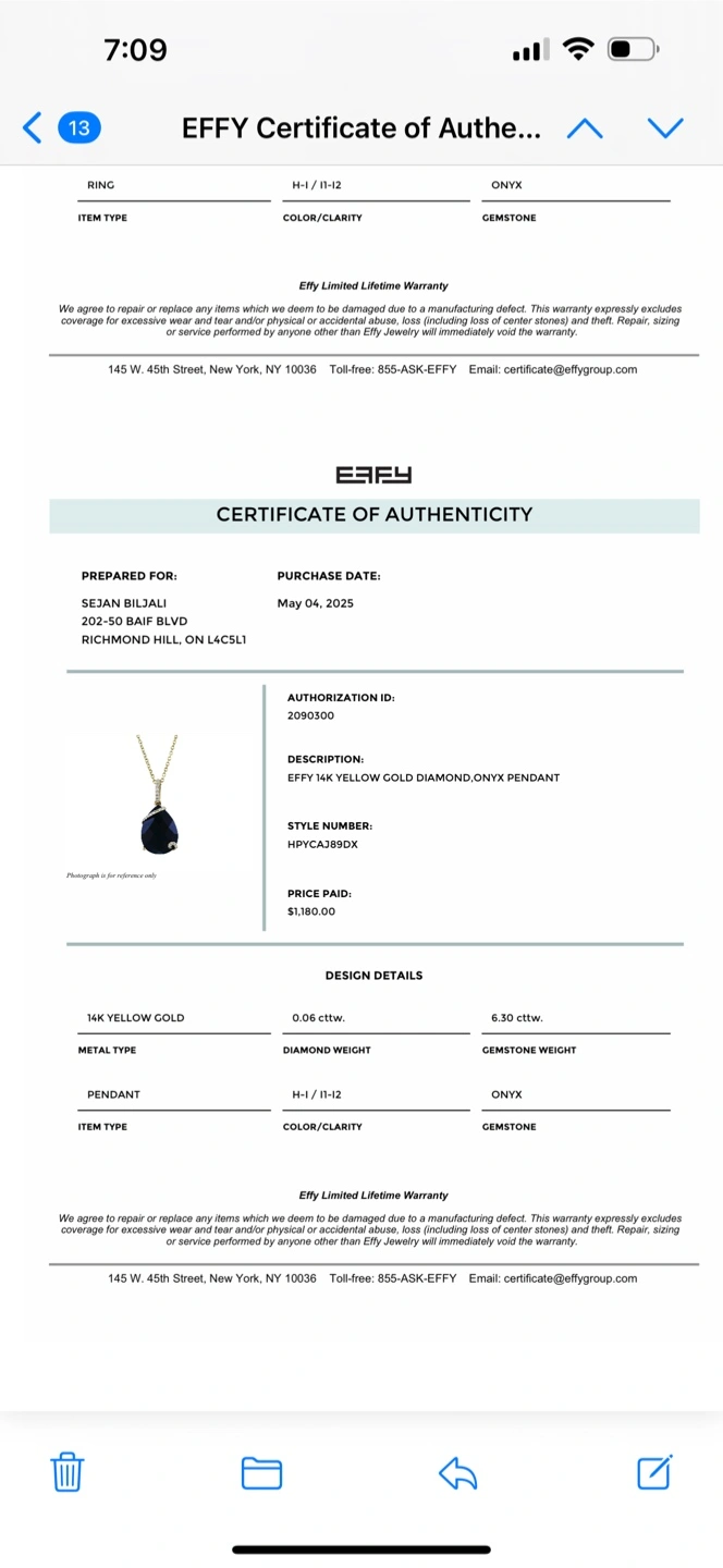 Effy 14K Yellow Gold Onyx Ring and Pendant Set