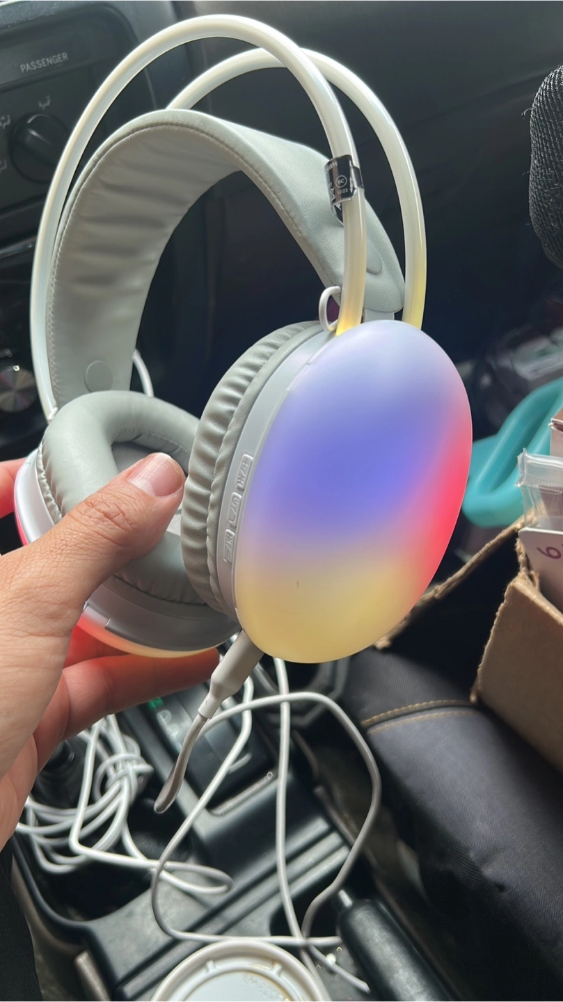 245LED light-up headphones. Grey and white color. Wired. Over-ear style.