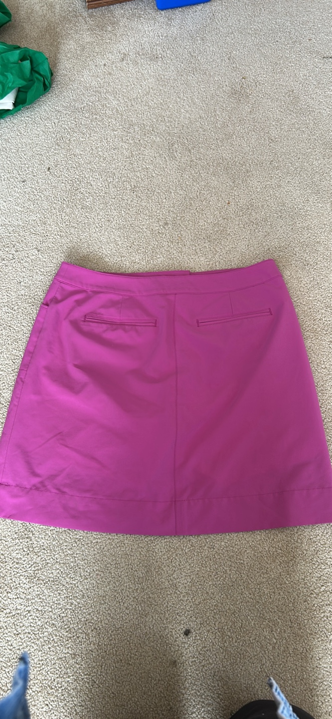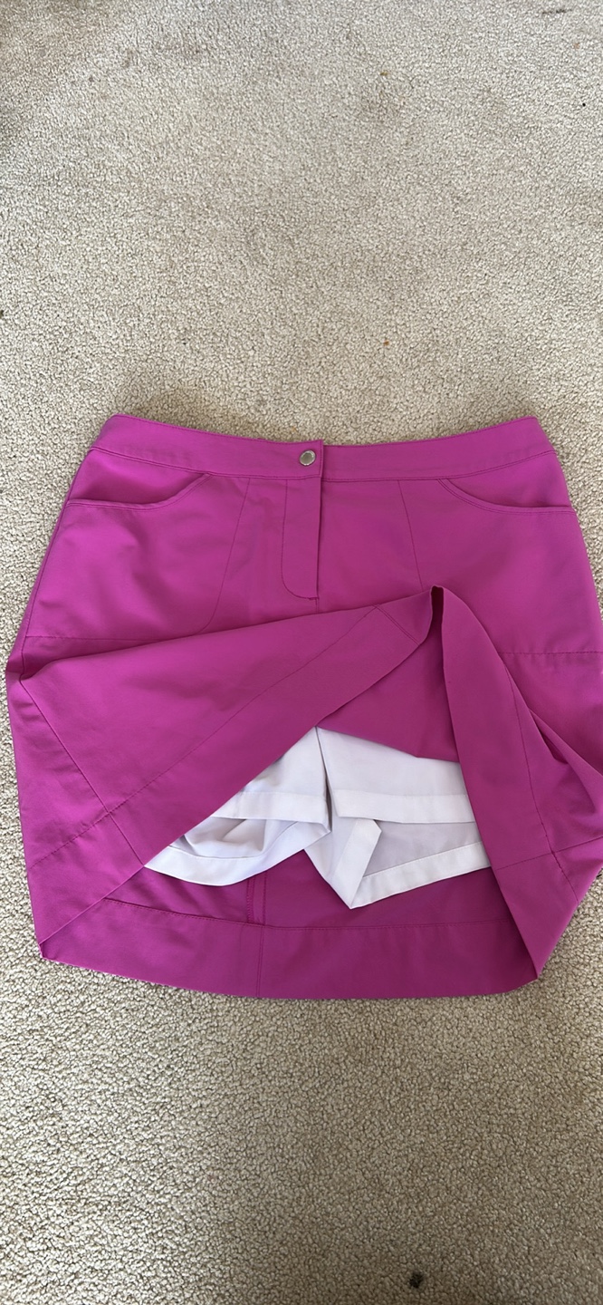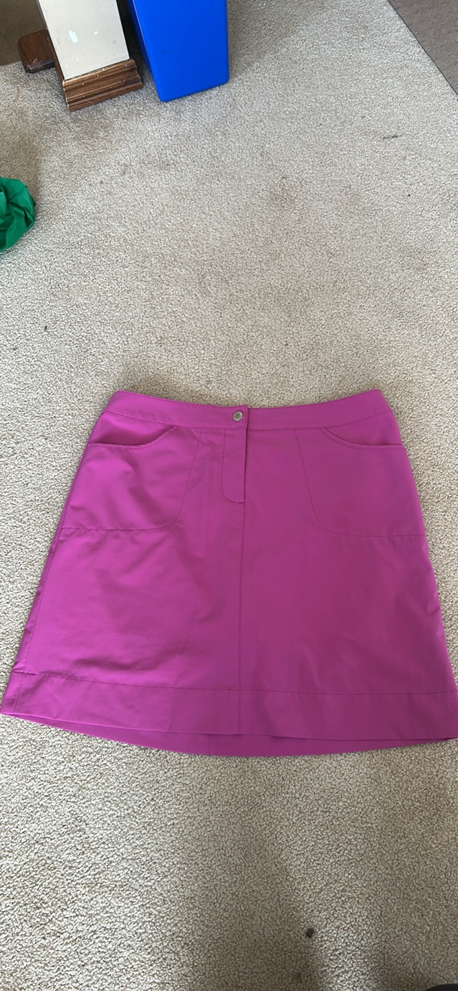 Women's golf skort. Pink. Size 6. Two pockets. Built-in shorts. 96% polyester, 4% spandex.