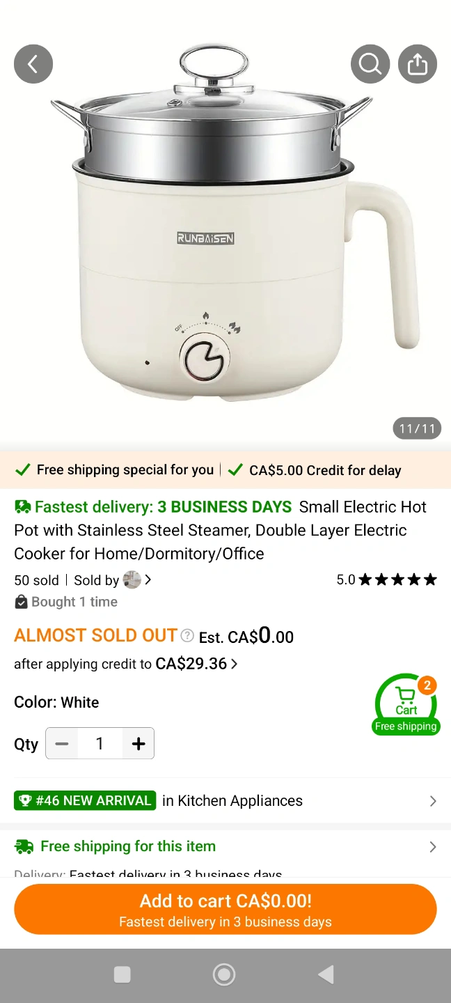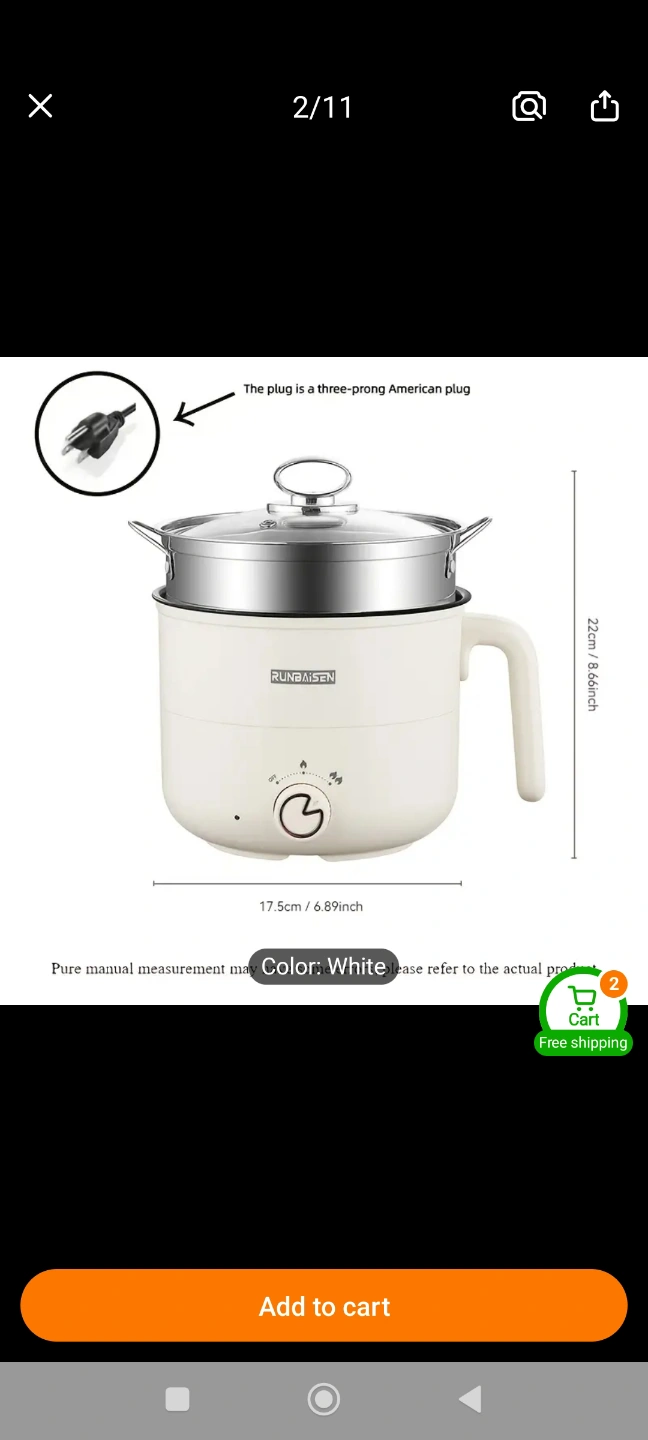 New RUNBAISEN Small Electric Hot Pot & Steamer Basket