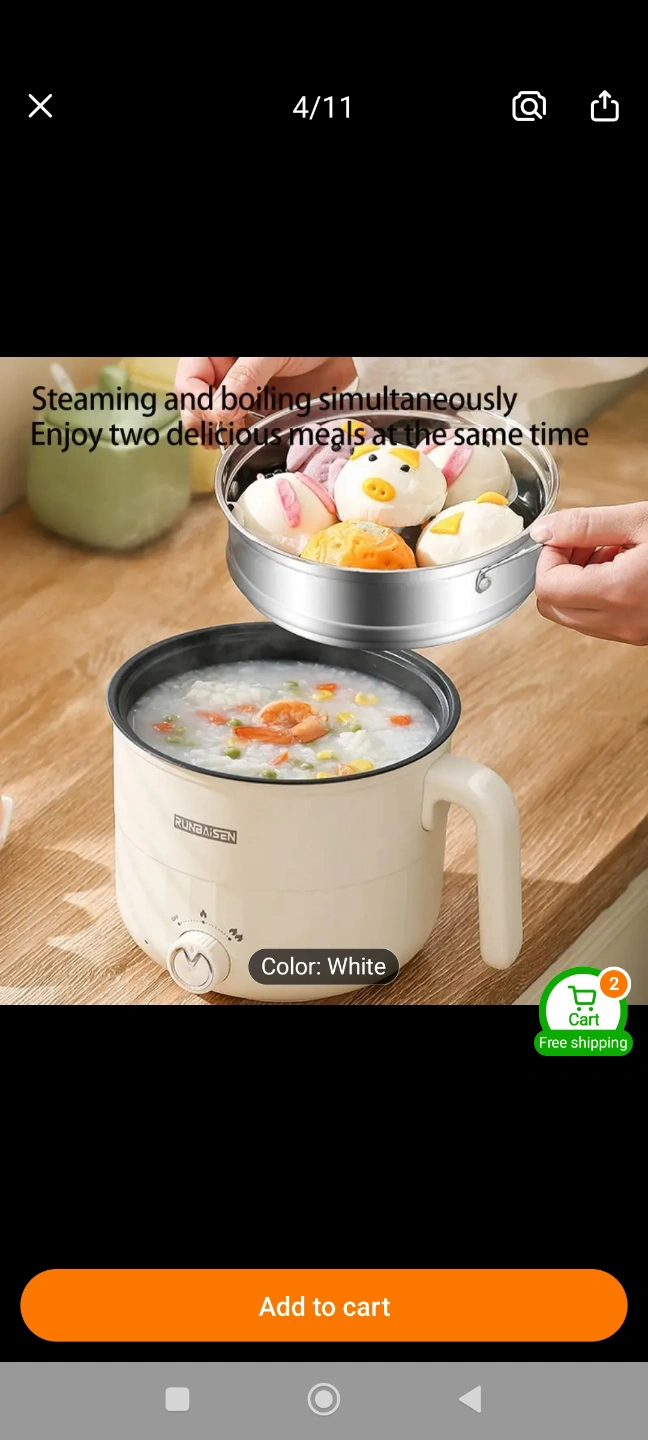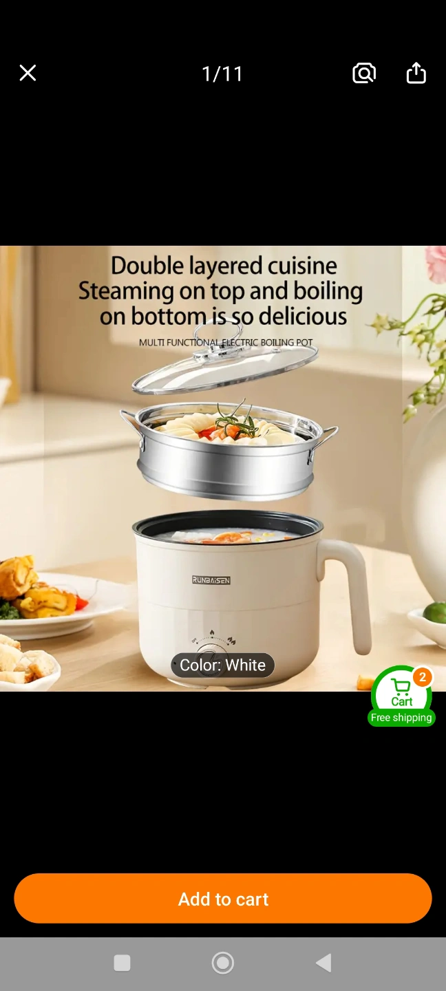 Double layer electric cooker. Portable and great for home, dorm, or office use. Features non-stick coating. Easy to clean.