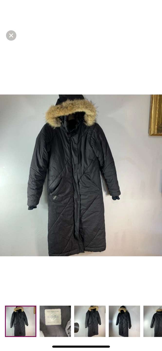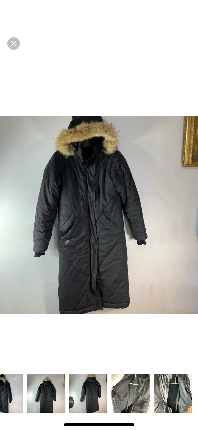 Warm winter parka. Long length. Features a fur-trimmed hood and zipper closure. Multiple pockets. Good condition. Priced to sell. I have too many coats!☺️