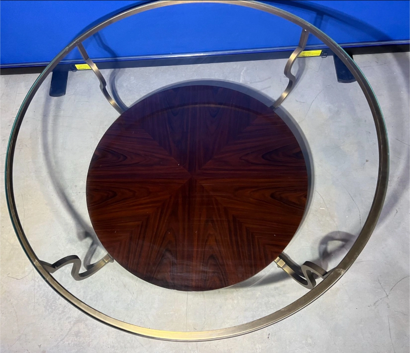 BOILER & COMPANY 44” ROUND GLASS/WOOD/METAL COFFEE TABLE