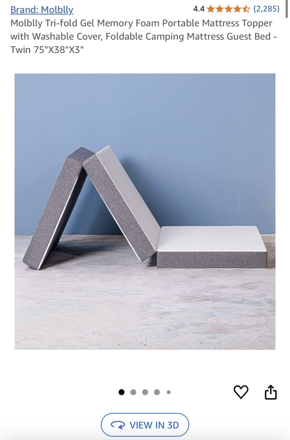 1 / 21 / 2Buy & SellTri-fold Gel Memory Foam Mattress Topper TwinTri-fold Gel Memory Foam Mattress Topper Twin$20Portable mattress topper. Washable cover. Foldable camping mattress guest bed. Twin size 75"x38"x3"ConditionGoodWHERE TO MEETNext to Sammuk thai restaurantView MapSELLERverifiedHazelWoodside16510 reviews1 chats·0 favorites·23 viewsSEND CHAT TO SELLERHi Hazel! I’m interested in your listing.Hi Hazel! I’m interested in your listing.Get the Karrot app to chatSign In to chat