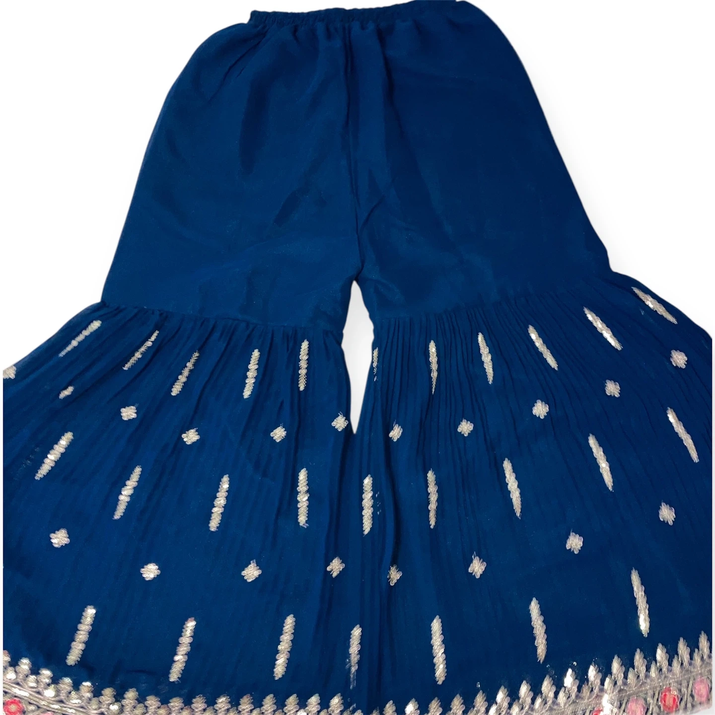 Navy Blue Embroidered Shrara Suit With Dupatta