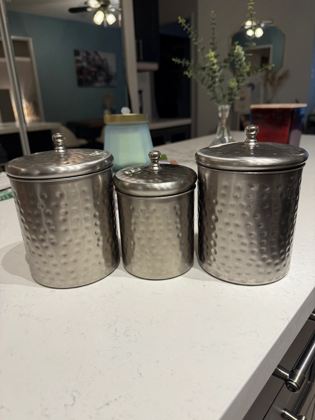 Set of 3 Hammered Metal Canisters
