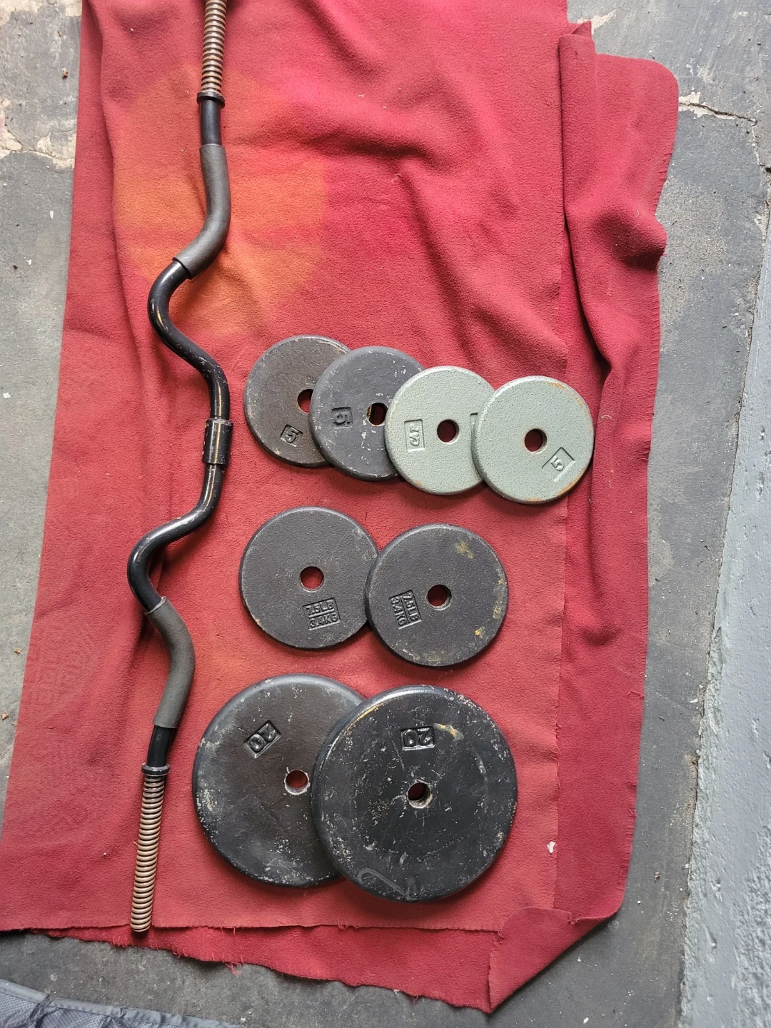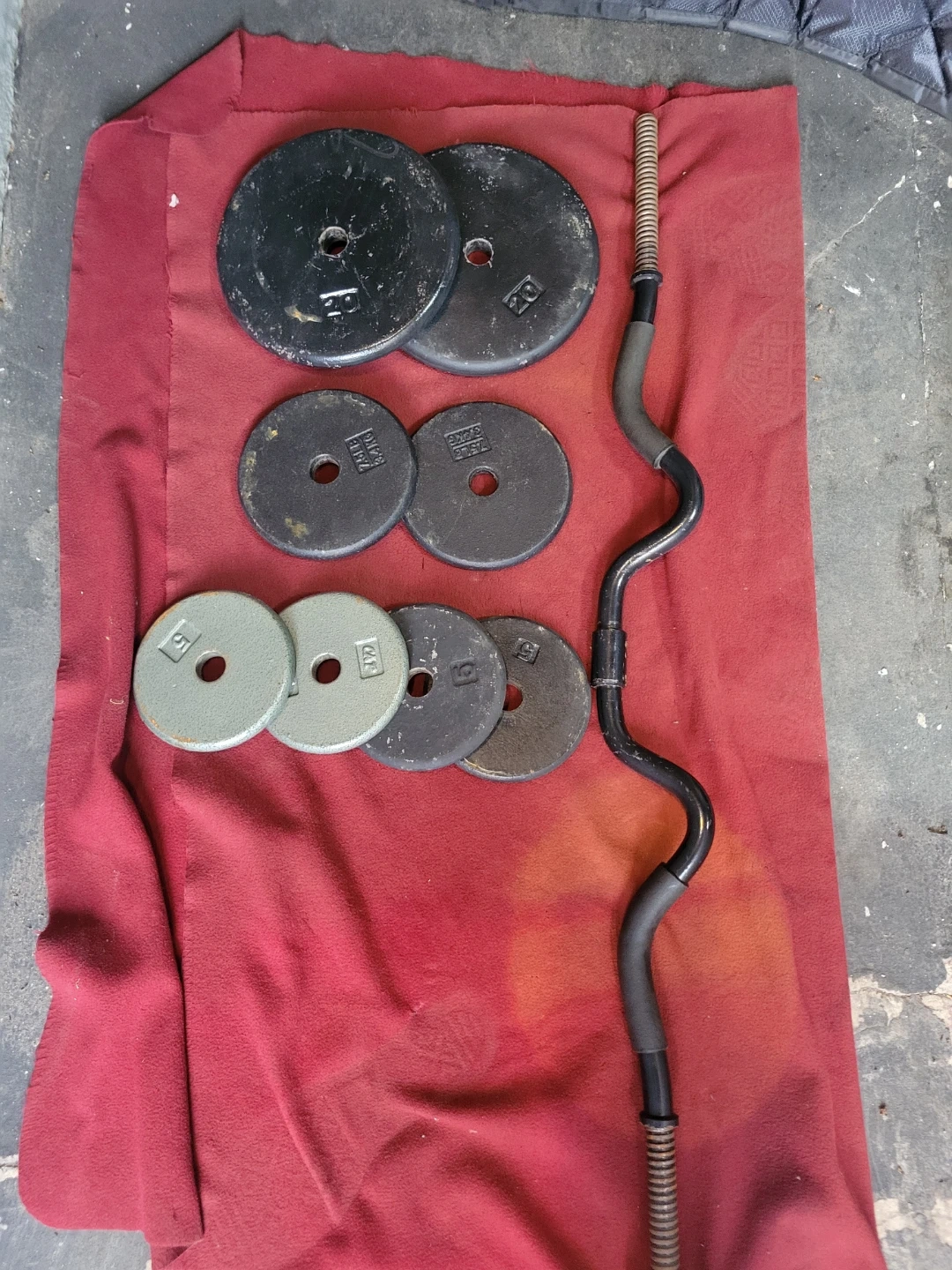 1" HOLE 75LBs. 2-20s. 2-7.5s. 4-5s EZ-CURL BAR