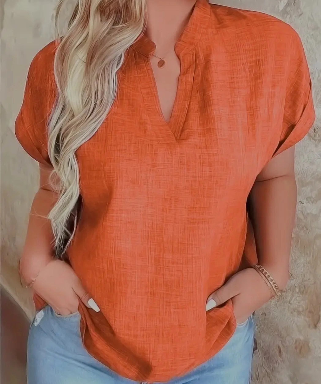 Women's burnt orange short sleeve V-neck top