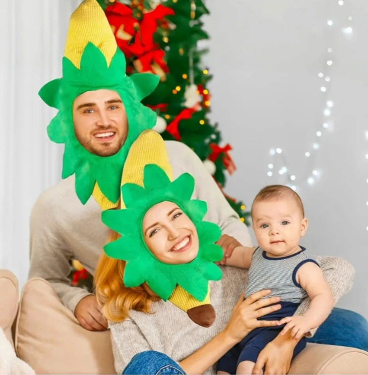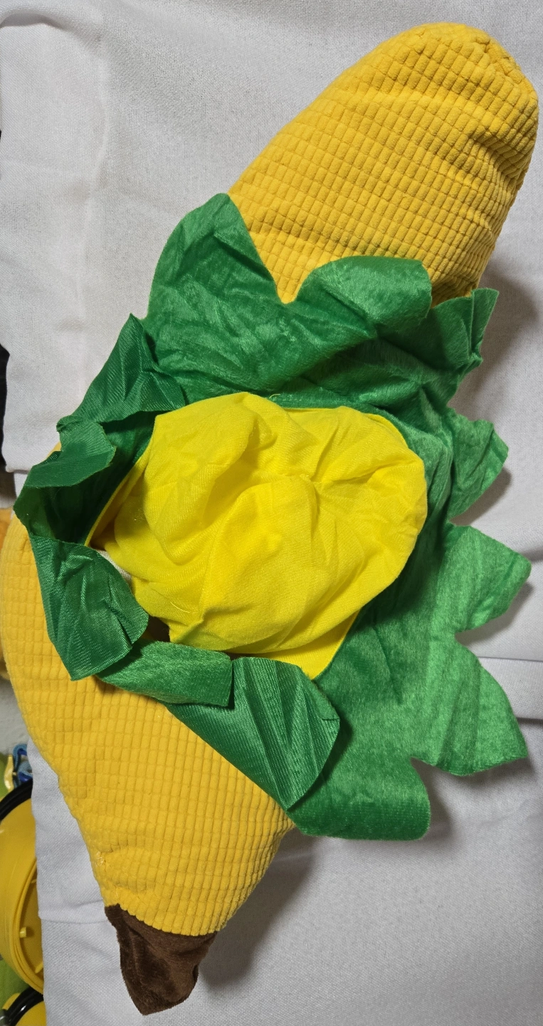 Adorable banana costume hat. Perfect for family photos or themed parties. Soft, plush material. Fun and silly.