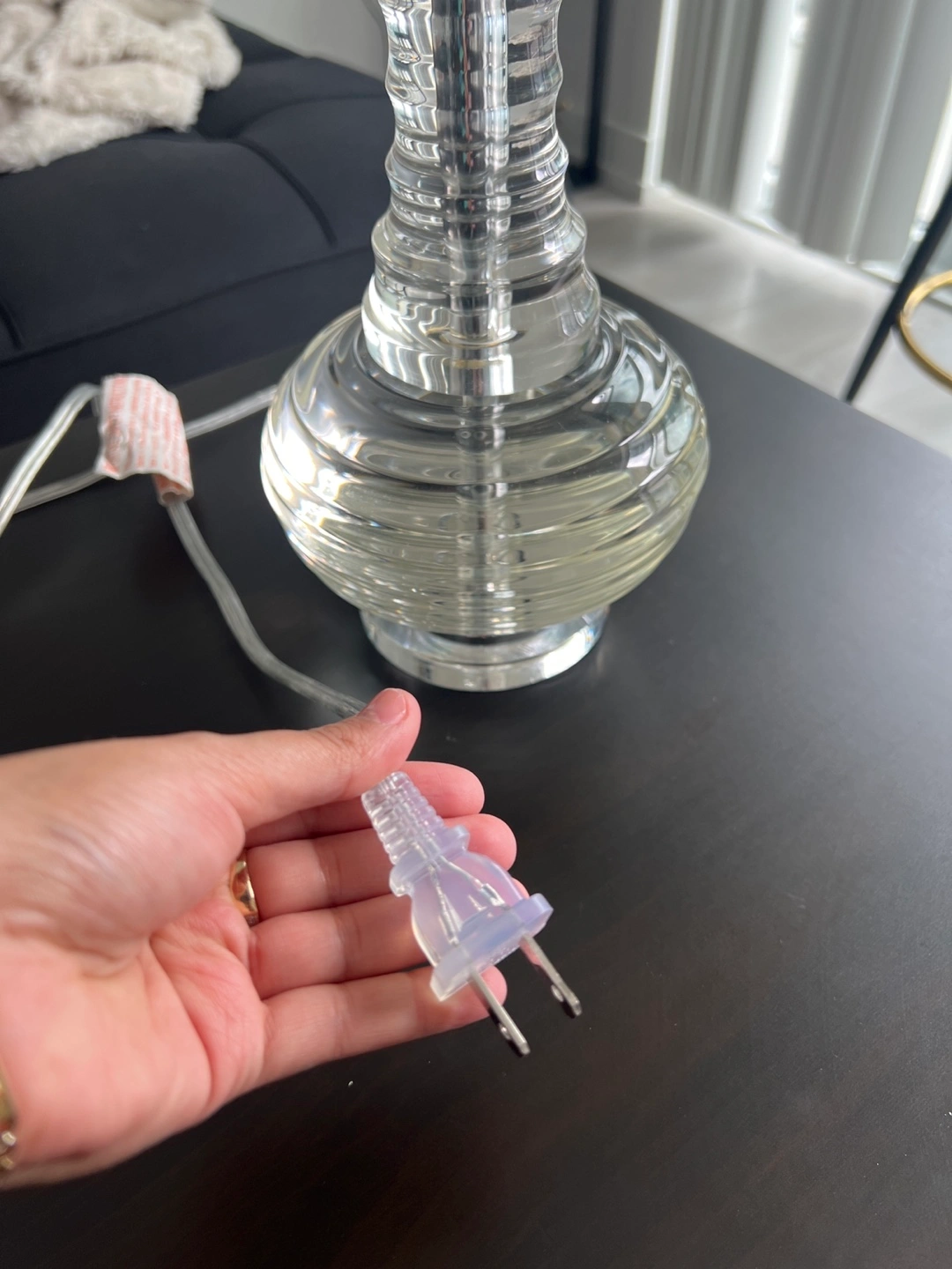Heavy, sturdy, expensive, minimal. It’s taller than usual table lamps. Can be used as a floor lamp. 19” tall