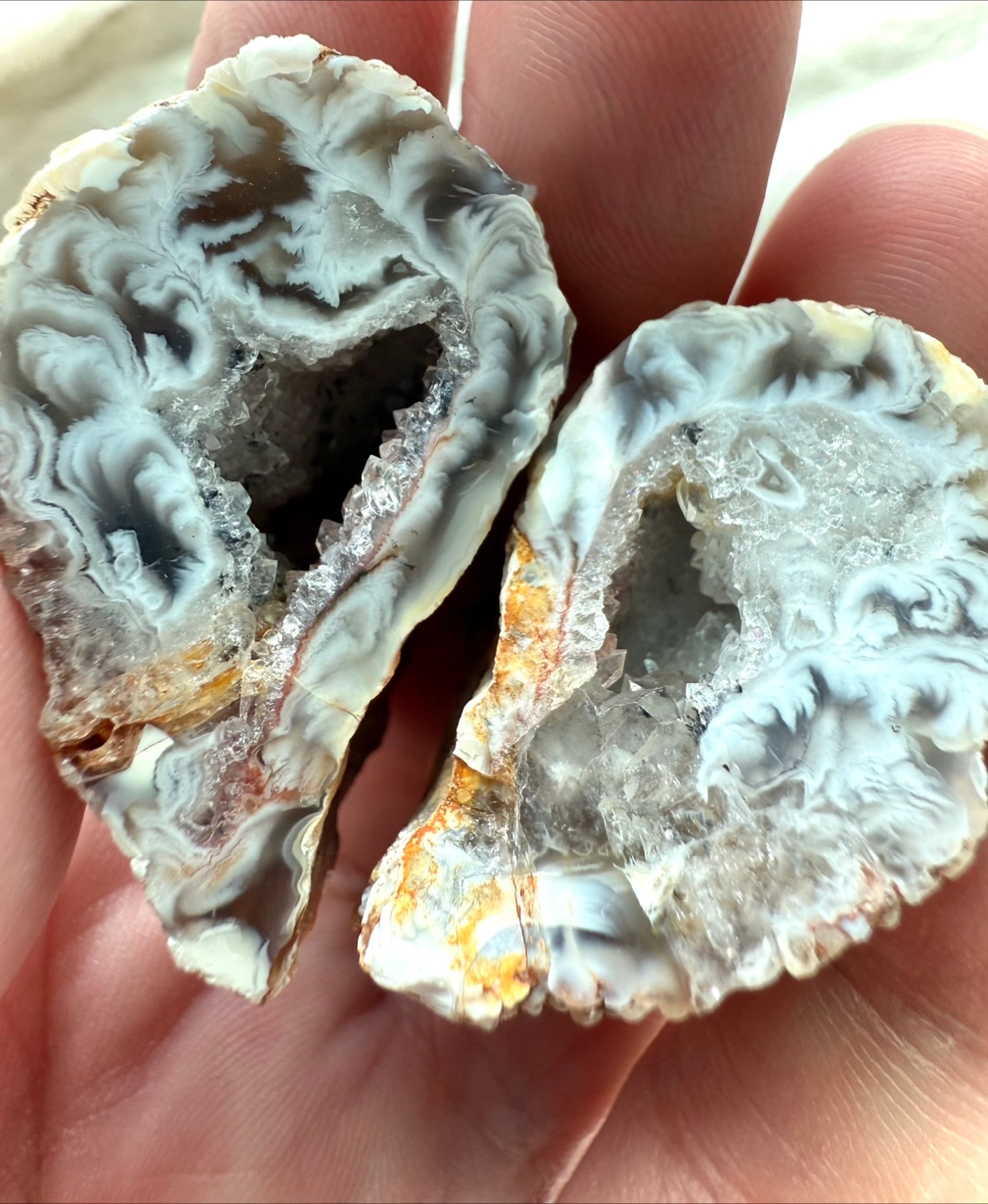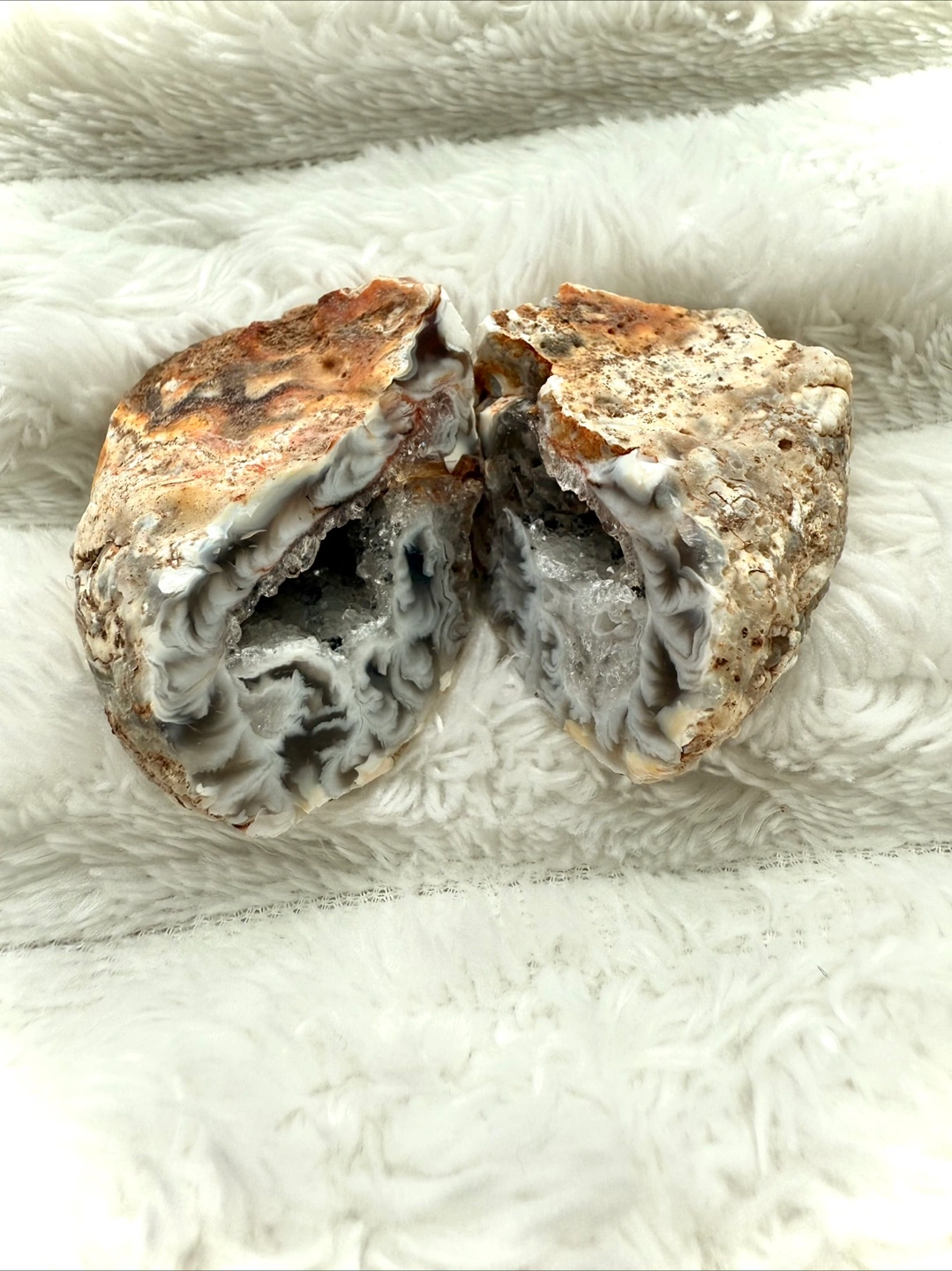 Rare Natural Grey Agate Geode – Pair