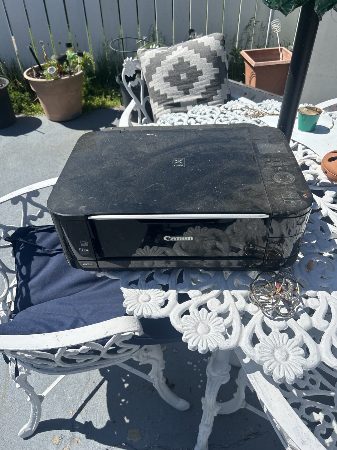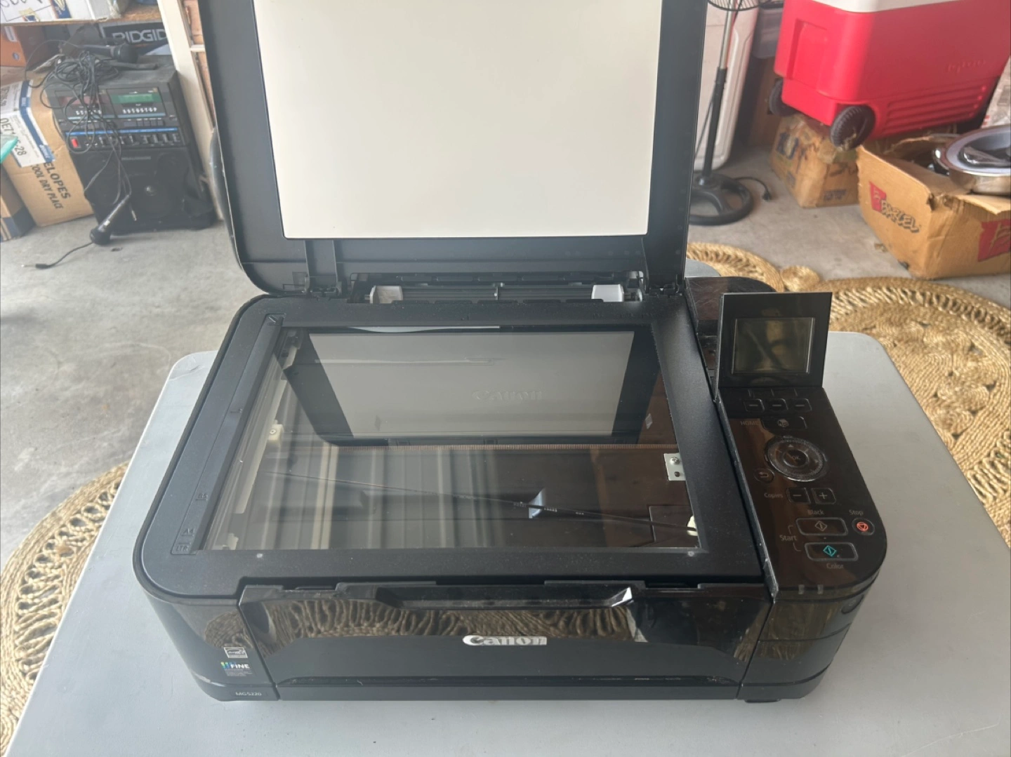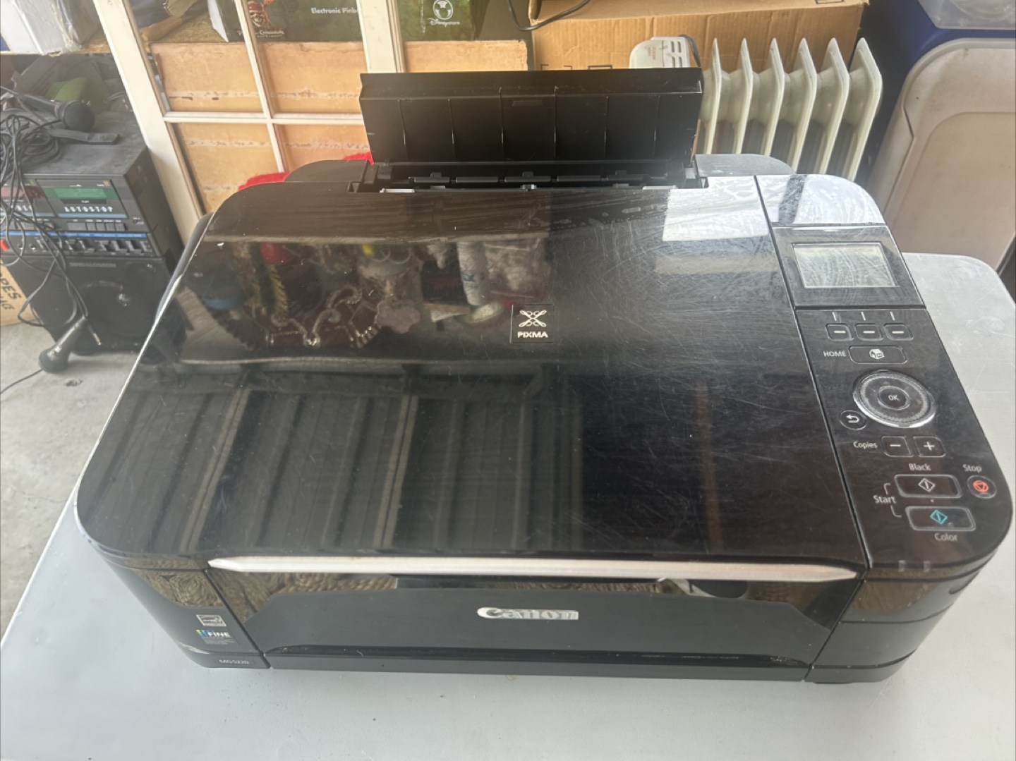 Used Canon PIXMA MG6220 printer. All-in-one functions. Prints, scans, and copies. Cord not included.