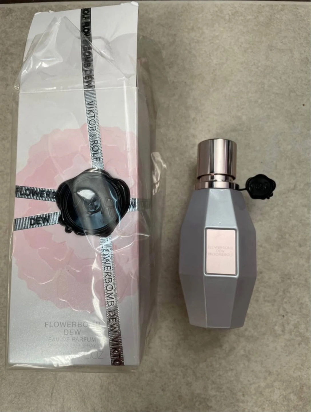 Flowerbomb Dew Eau de Parfum. 30ml bottle. New in box. Beautiful light gray bottle with rose detail.