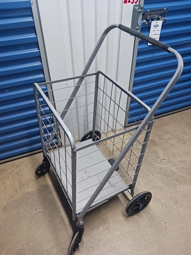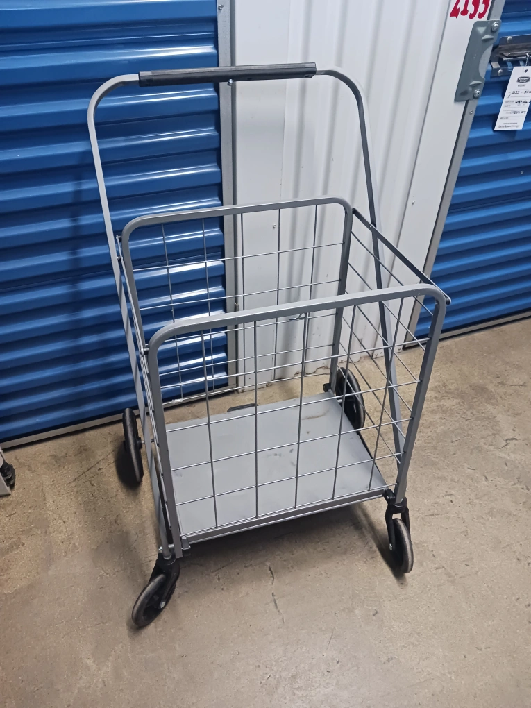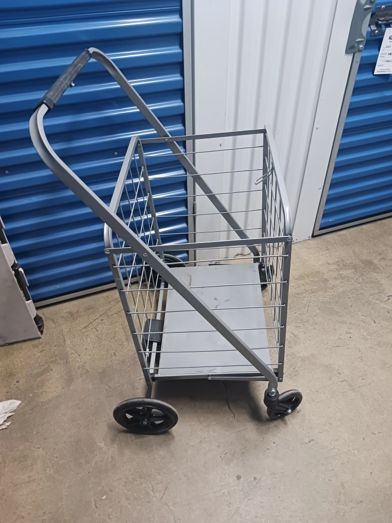 Heavy Duty Metal folding shopping cart. Four wheels. Front wheels spin for easy steering.. Convenient handle. Collapsible design for easy storage. Great for groceries, hauling items, or general use. Firm Price.. meet at a McDonald's near Montrose and Cicero