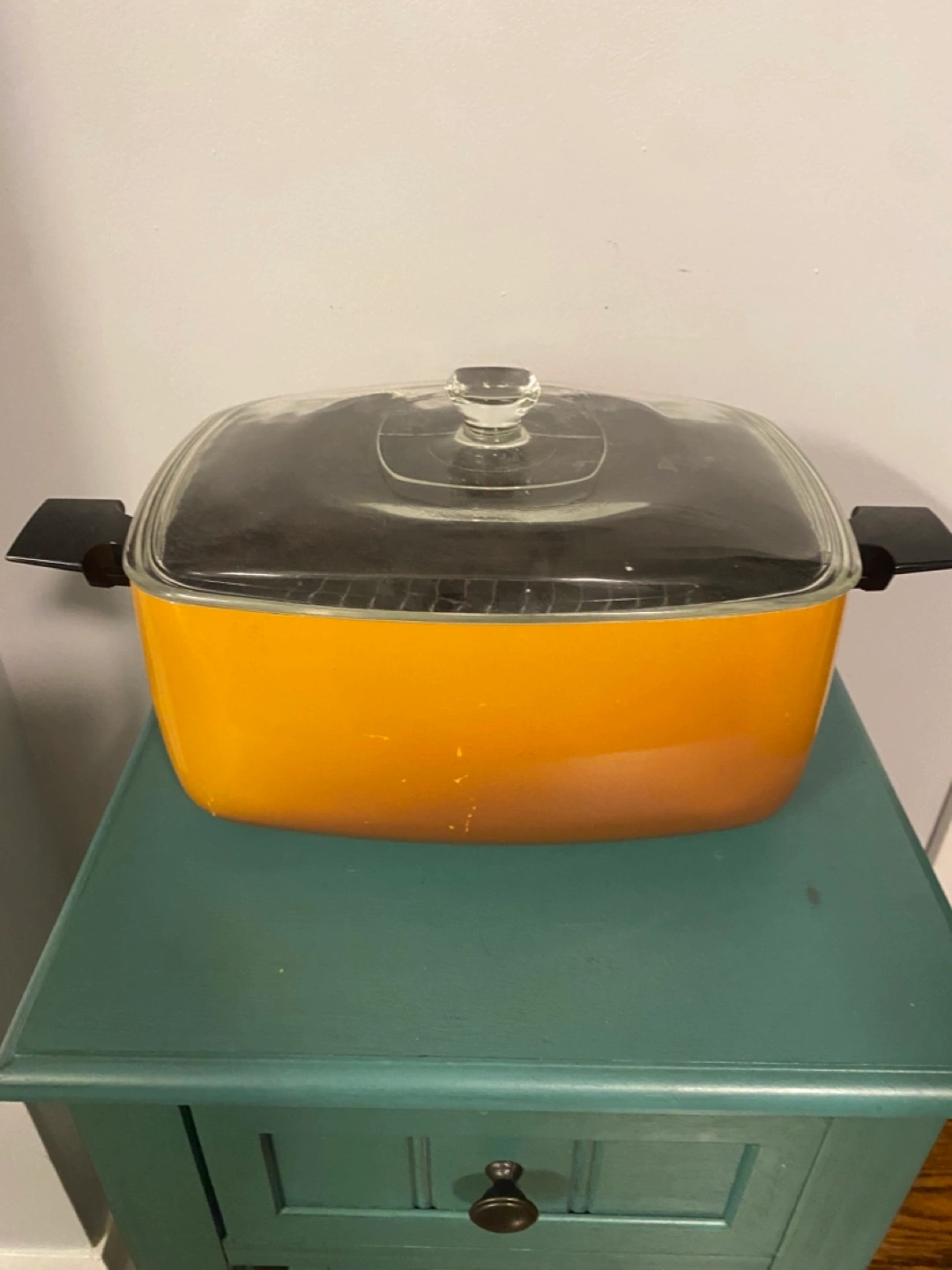 Vintage Orange roast pot with Glass Lid