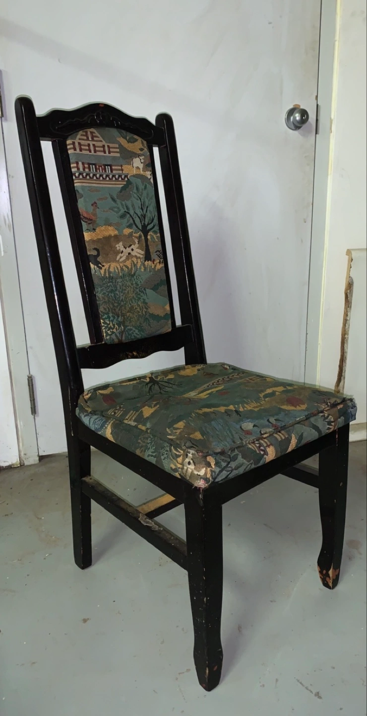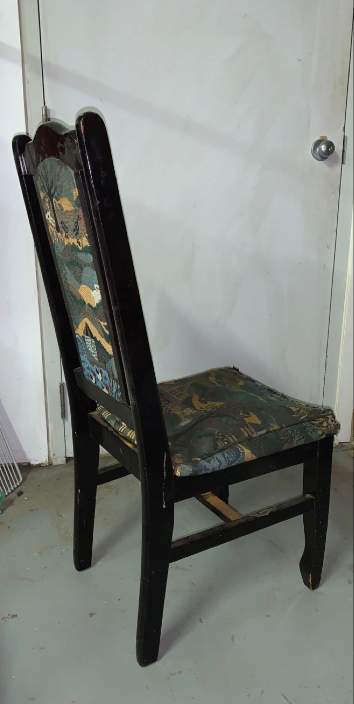 #freecycle Vintage Wooden Dining Chair with Tapestry Upholstery