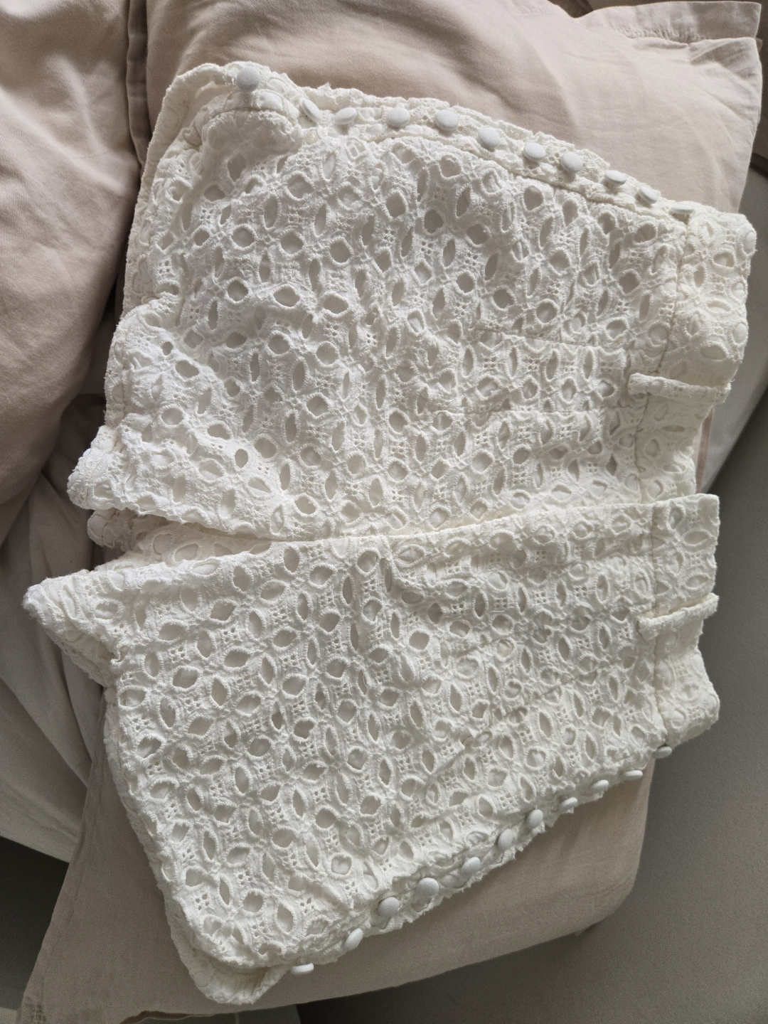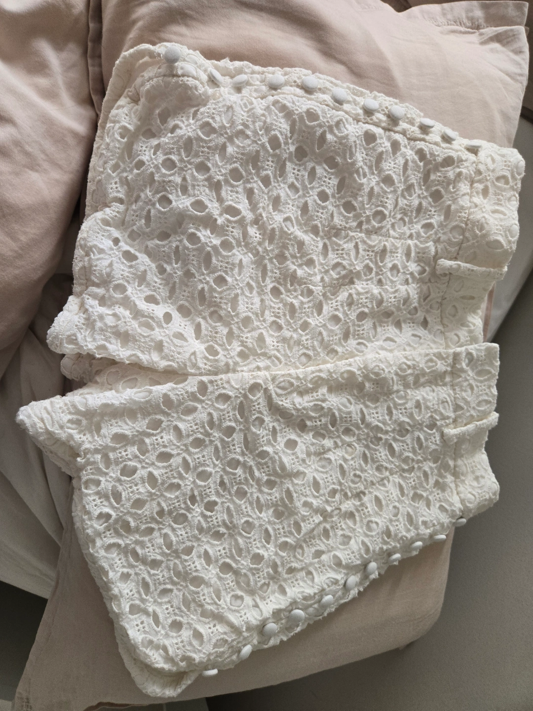 White eyelet shorts. Size xs. Button detailing. Worn once
