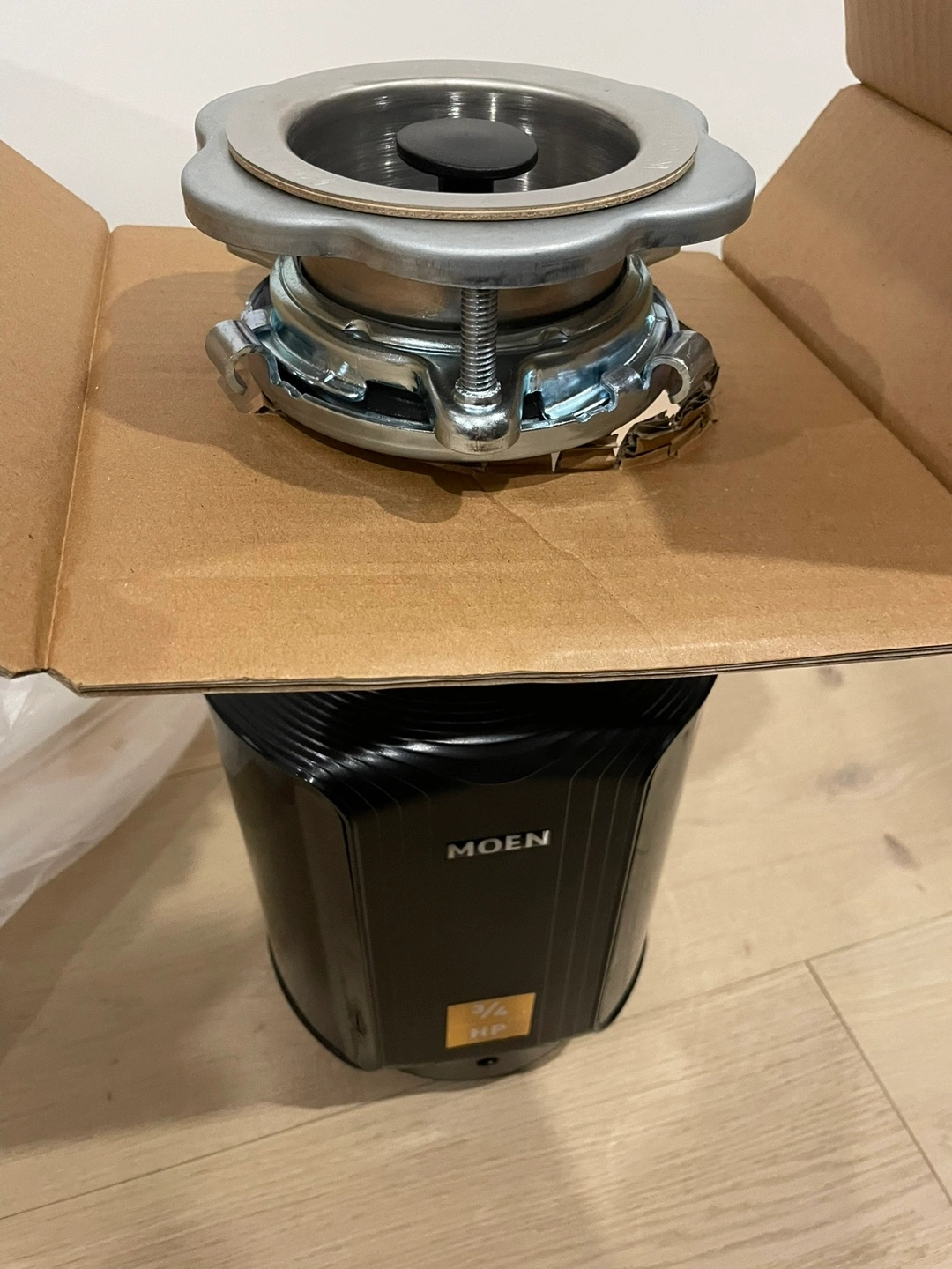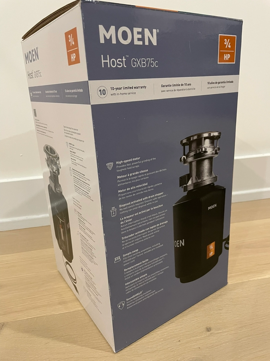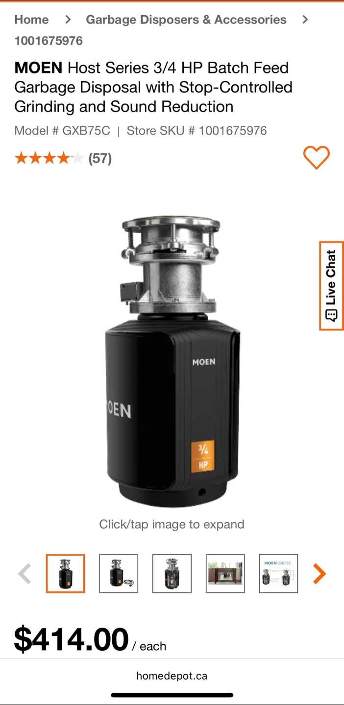 MOEN Host Series 3/4 HP Batch Feed Garbage Disposal with Stop-Controlled Grinding and Sound Reduction (Model # GXB75C) From Home Depot. Brand New in Box. $235