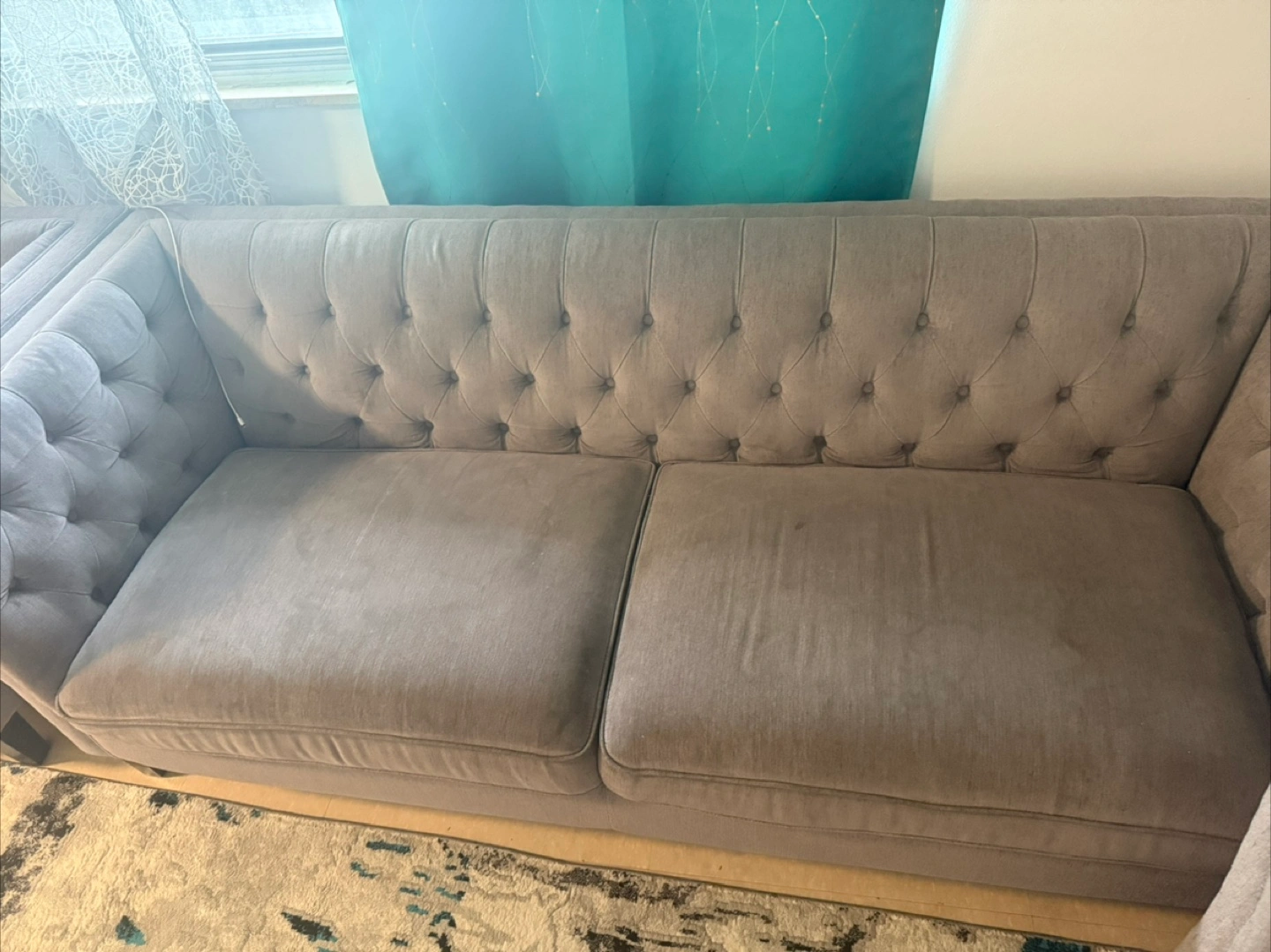 Grey Tufted Sofa Set