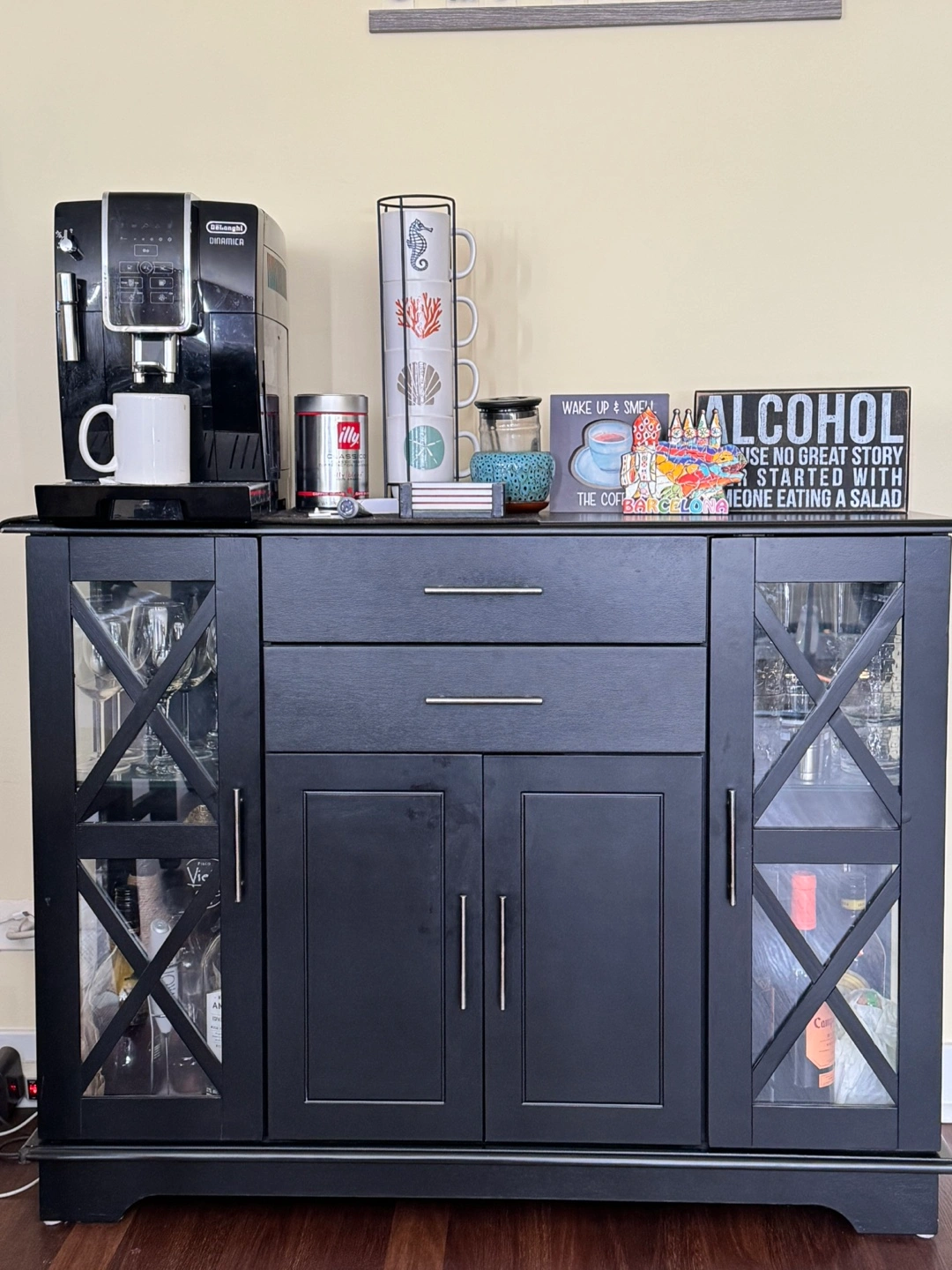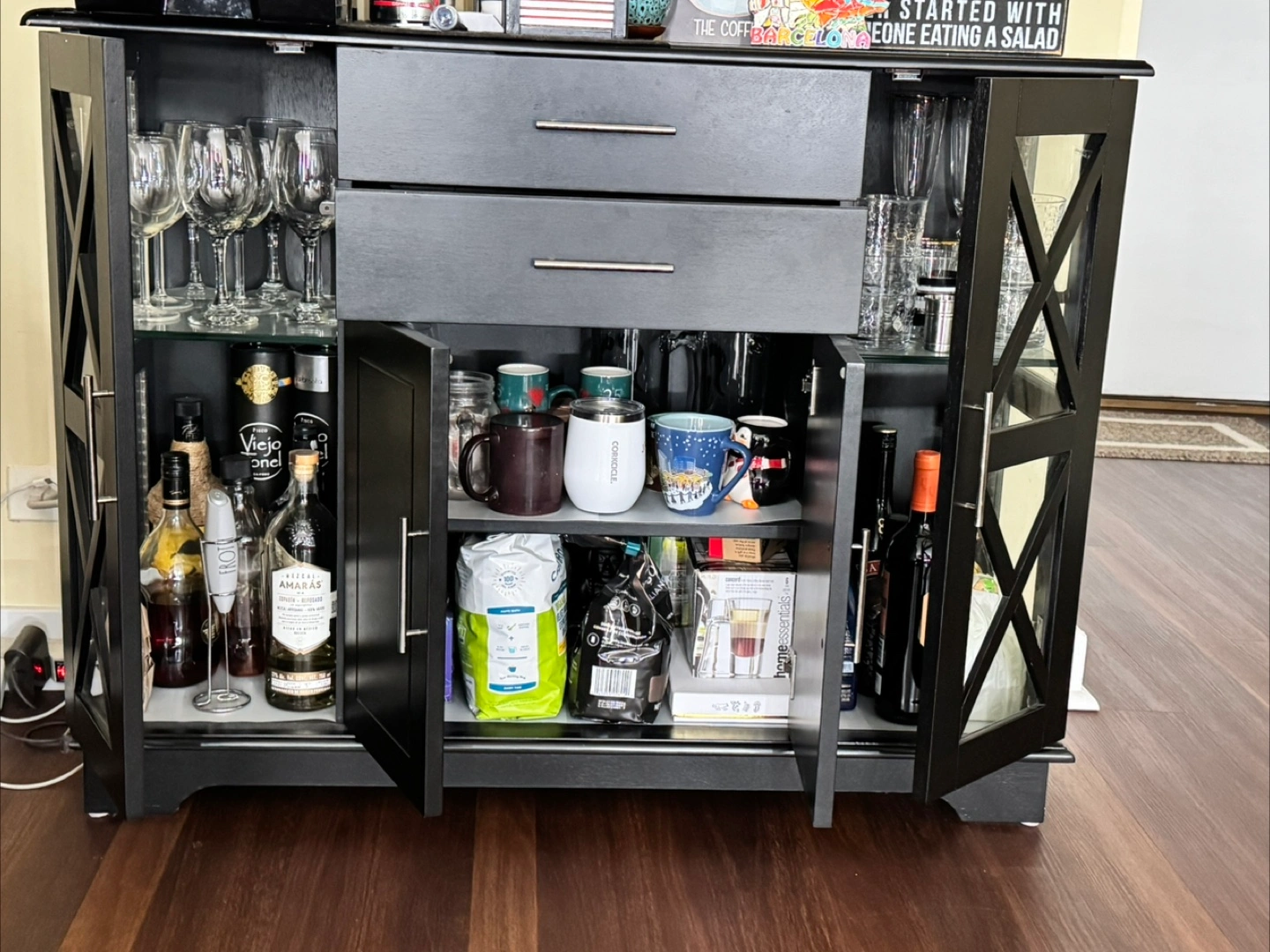 Gently used, excellent condition - 47" Transitional Buffet with Two Glass Doors, Two Drawers, and Five Adjustable Shelves, Black (originally costs $300 - https://www.walmart.com/ip/Luna-Accent-Cabinet-with-Two-Drawers-Black-MDF/122400797?classType=VARIANT&adsRedirect=true). Pickup only, at Irving Park and Lakeshore Dr