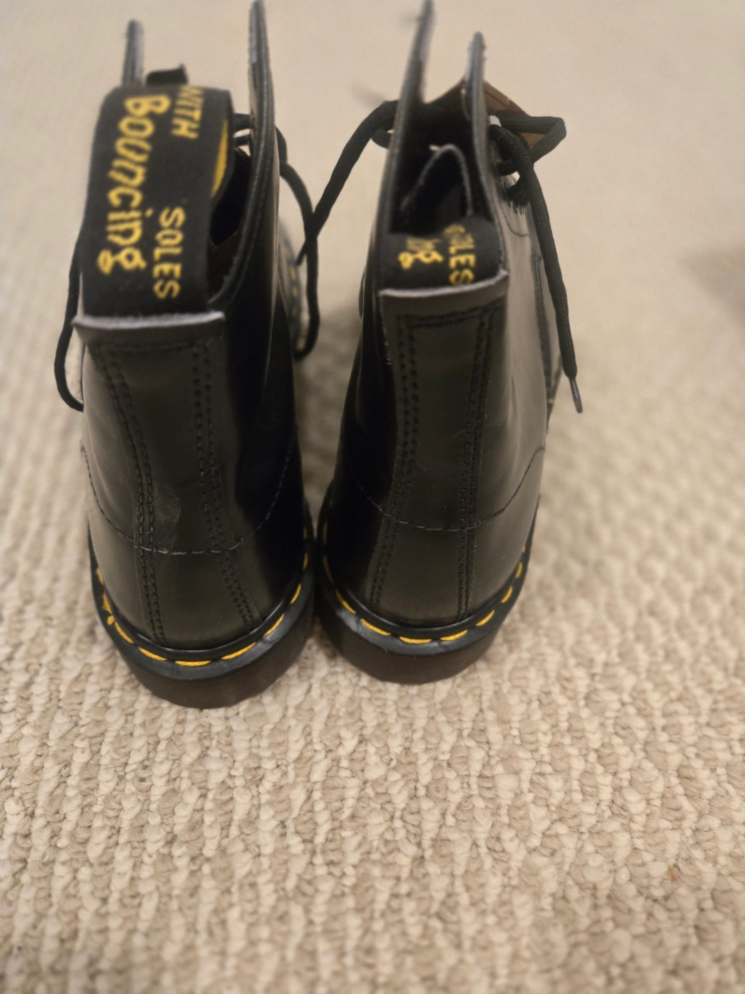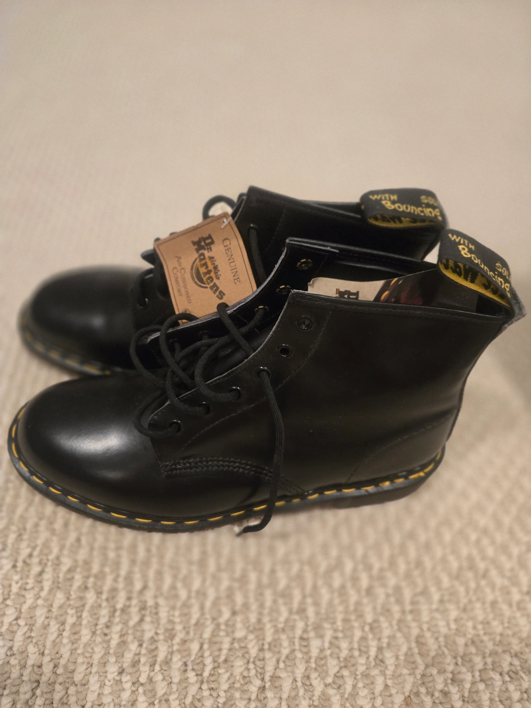 Brand new Dr. Martens black boots. Black leather. Air cushioned. Made in England. Bouncing soles. Brand new with Tag. no box..retails for over $300