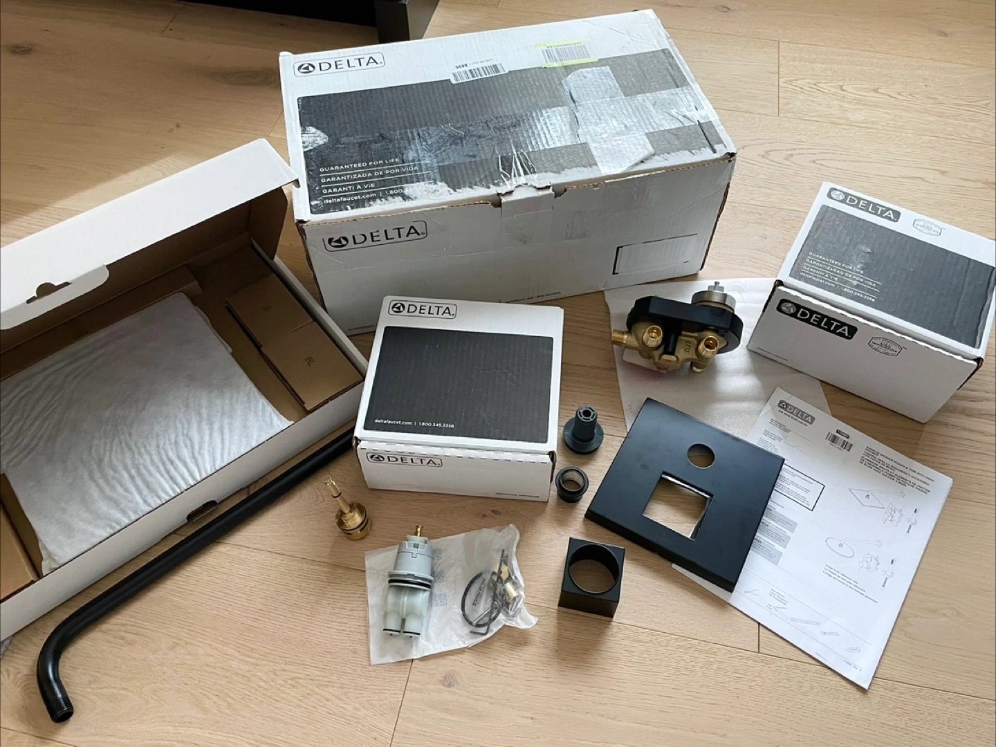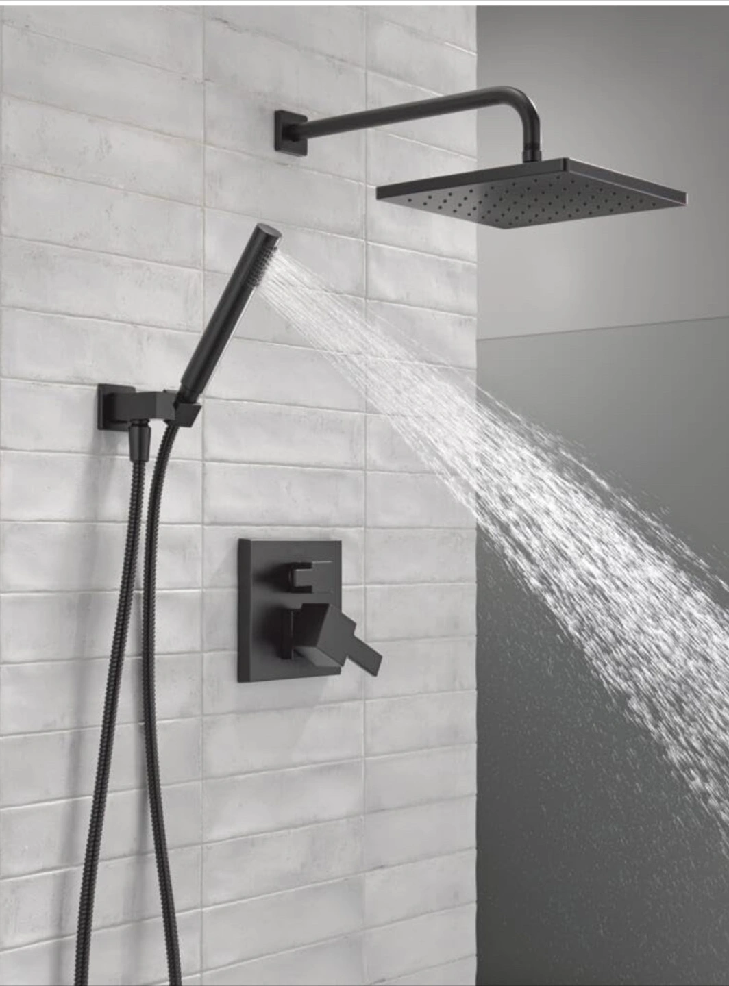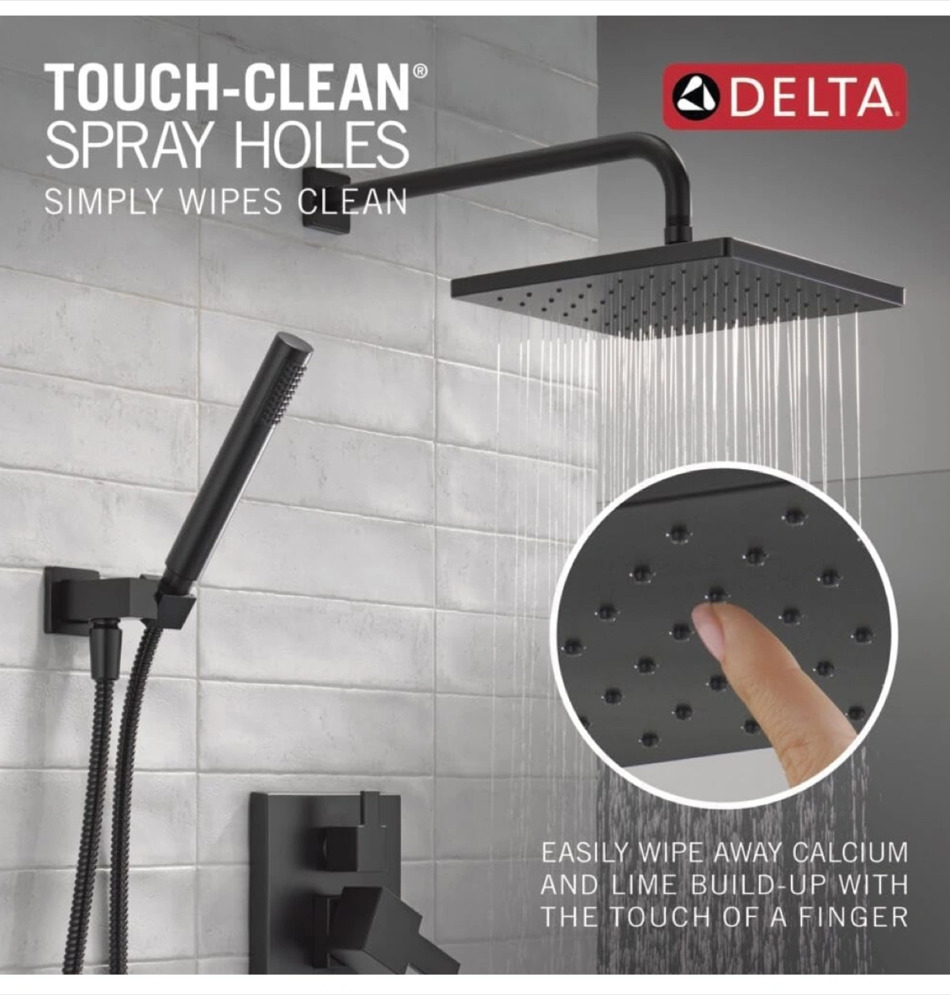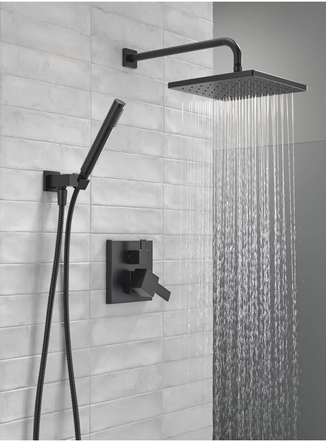 DELTA Modern Raincan Complete Shower System Incl Rain Shower Head, Handheld Sprayer. Square. Matte Black. Brand New in Box. $560
